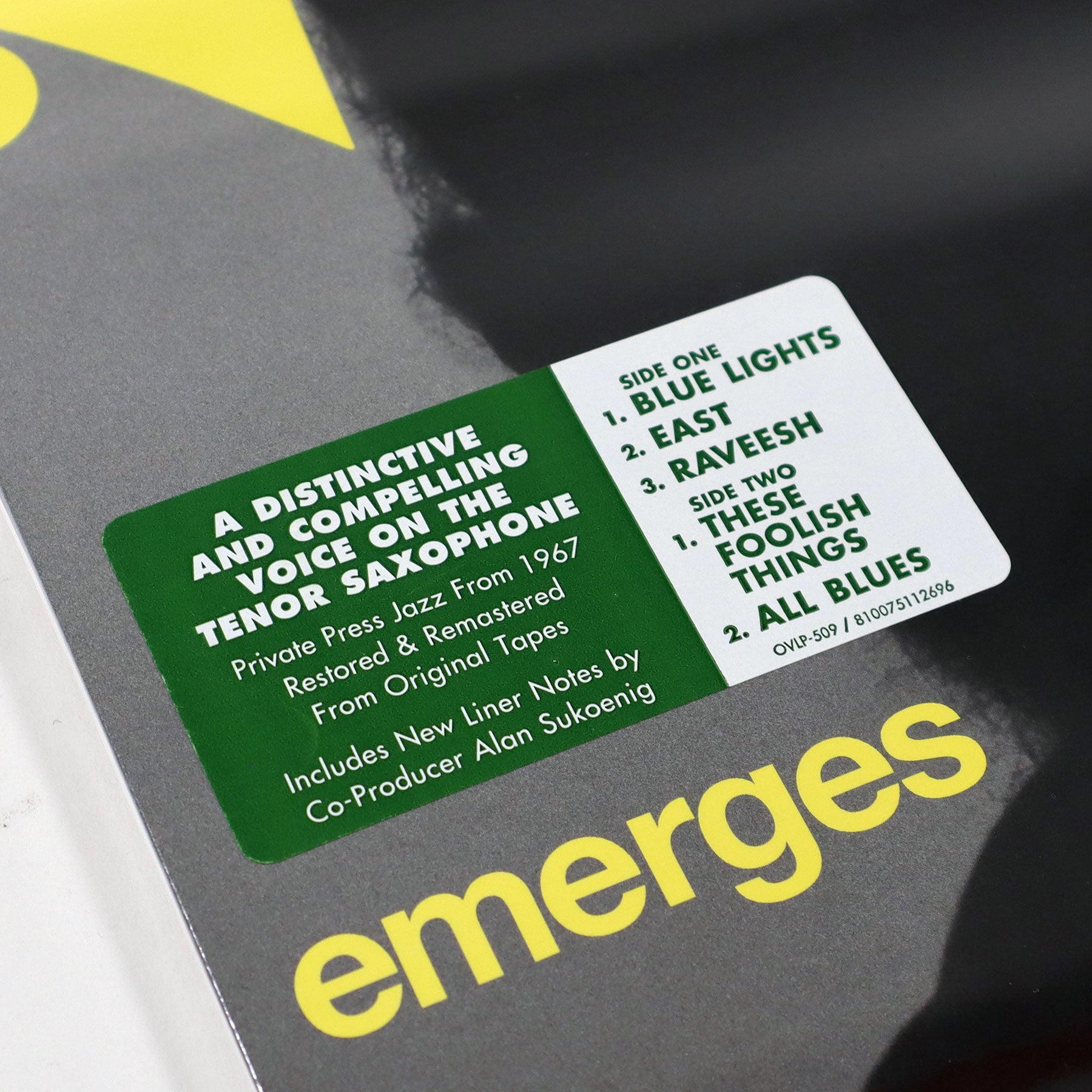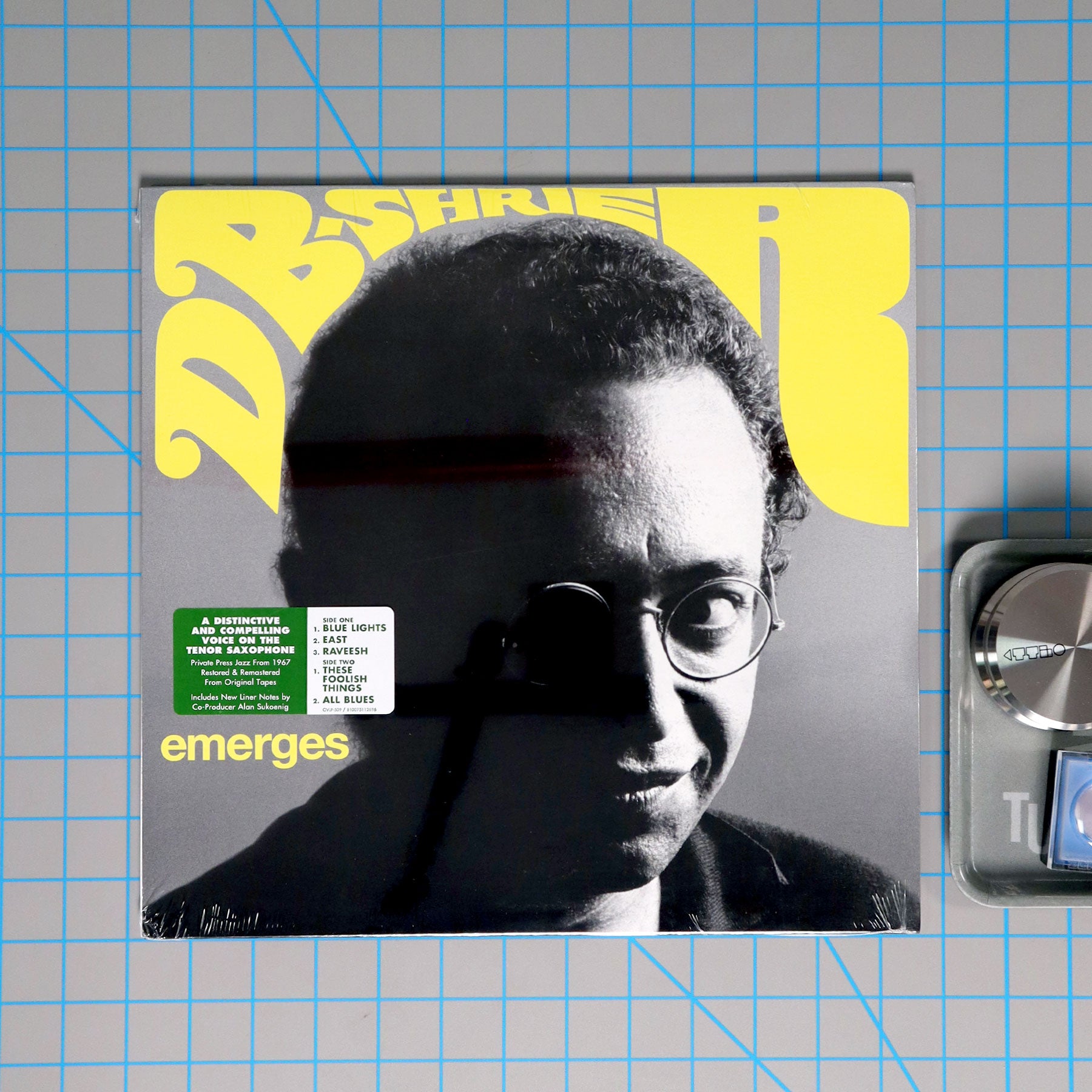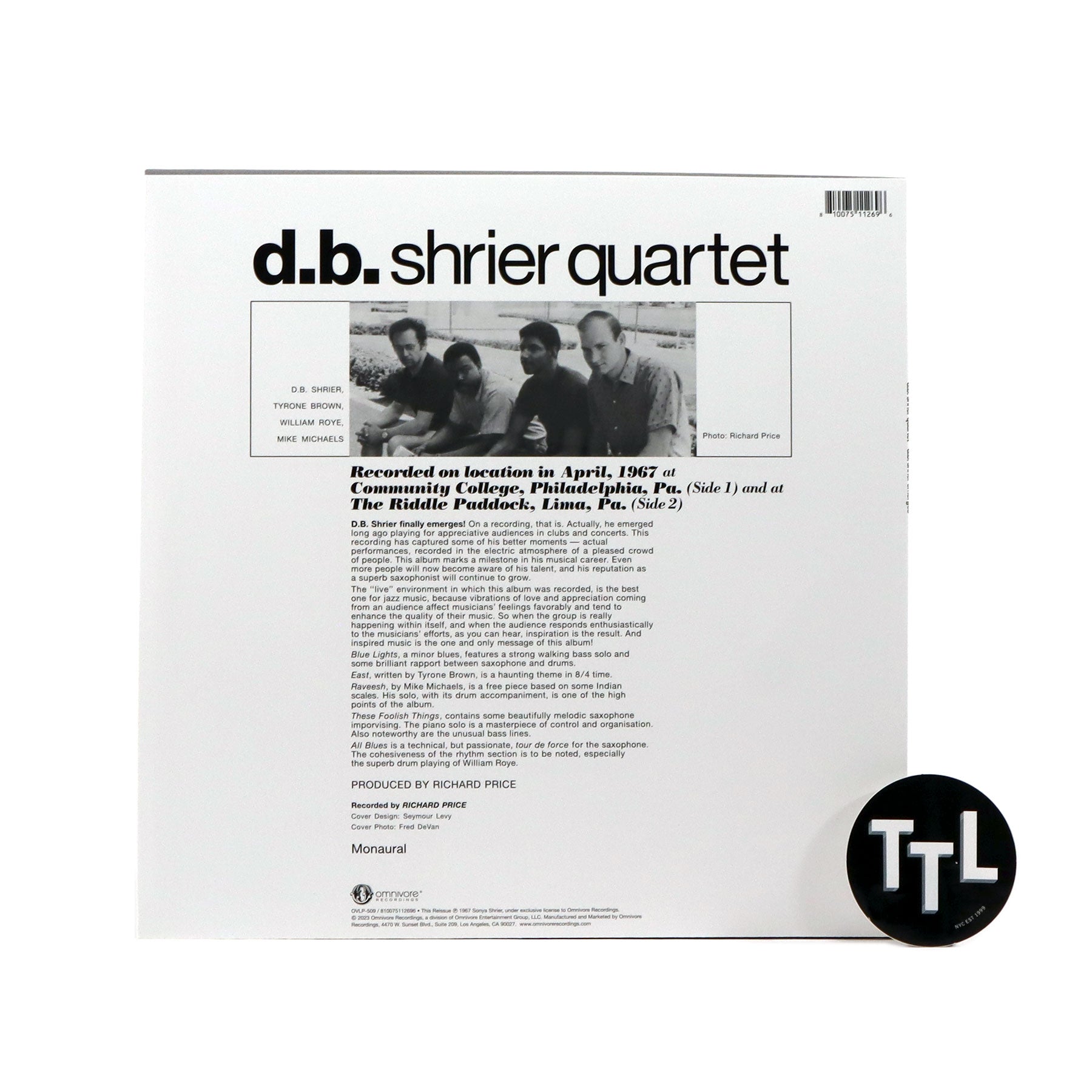 "Dave (D.B.) Shrier was active in the Philadelphia jazz scene of the 1960s. Sadly, his only studio-recorded work was a 1967 private press LP release, D.B. Shrier Emerges by the D.B. Shrier Quartet, on Alfa Records. But, as always, there is far more to the story. While attending the University of Pennsylvania in the 1959, Alan Sukoenig heard jazz emanating from a rehearsal room adjacent to the cafeteria. Sukoenig walked in during a jam session tenor sax player Shrier was having and the two soon became friends, bonding over their shared love of music. A few years later, Shrier recorded soon-to-be Philly legend Hasaan Ibn Ali performing. Shrier let Sukoenig, another fan of Hasaan’s work, make a copy. Fast forward a few decades, as Sukoenig was developing a project which would become 2021’s Retrospect In Retirement Of Delay, Alan contacted Dave about that original source tape. They had both temporarily forgotten that it had been stolen from Shrier’s apartment in 1965. The fascinating story of its acquisition the search for the non-existent tape is outlined in D.B. Shrier Emerges’ liner notes, but one major development in that search was the finding the original tapes for D.B. Shrier Emerges. Performed by D.B. Shrier (tenor saxophone), Mike Michaels (piano), Tyrone Brown (bass), and William Roye (drums), the original 5 tracks (featuring performances of 'These Foolish Things,' Tyrone Brown’s 'East,' and Miles Davis’ 'All Blues') return on LP." - Omnivore