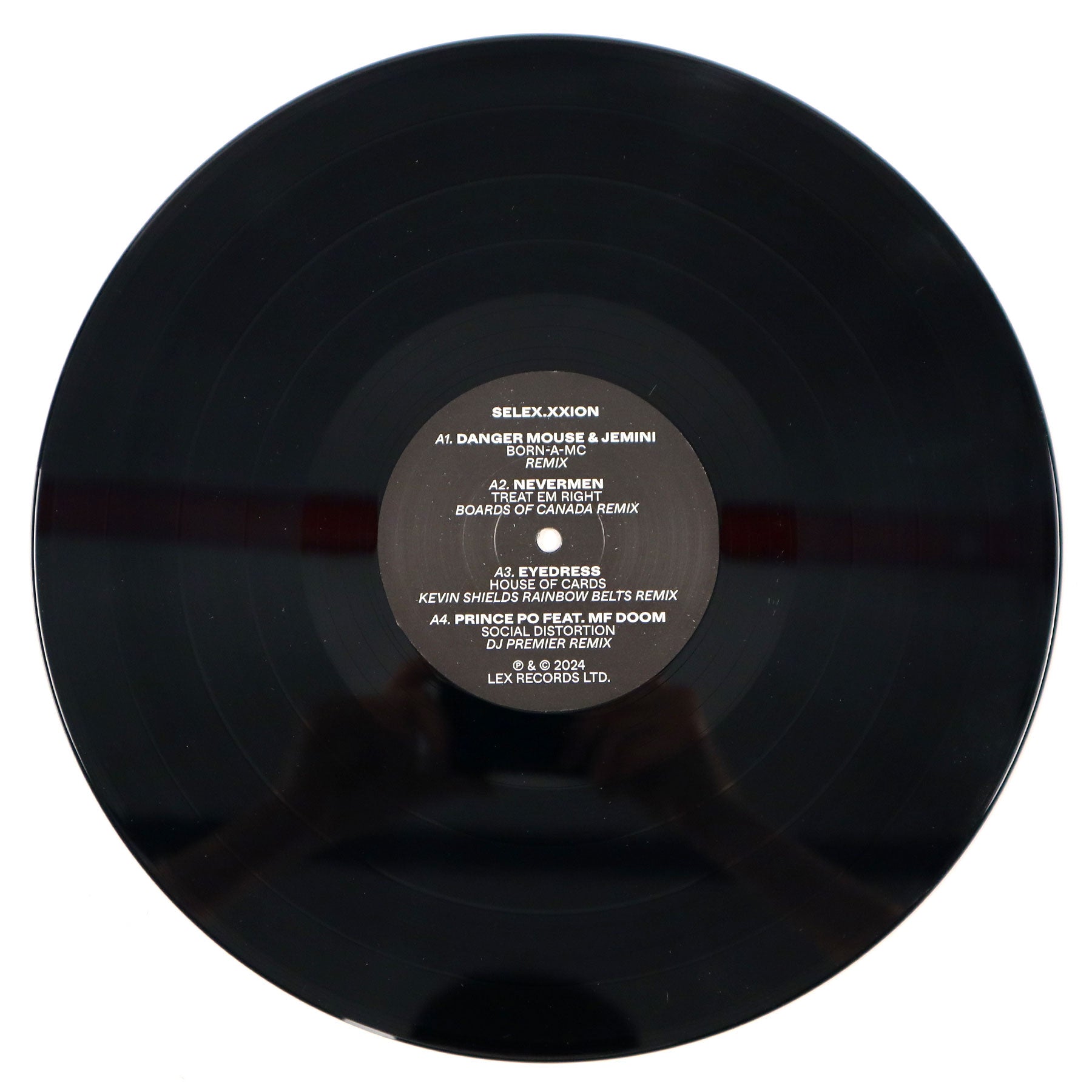 "To commemorate 20 years of Lex Records, this limited 12-inch sampler presents on vinyl for the first time remixes by Danger Mouse, Boards of Canada, DJ Premier, and Kevin Shields (My Bloody Valentine). Limited to 1000 copies, each heavyweight vinyl comes packaged in a clear sleeve, with an intricately etched B-Side featuring artwork by Commission Studios. Additionally, every copy of the record includes four large-format stickers, each inspired by one of the four tracks. A1. Danger Mouse & Jemini 'Born-A-MC' (Remix) A2. Nevermen 'Treat Em Right' (Boards of Canada Remix) A3. Eyedress 'House of Cards' (Kevin Shields Rainbow Belts Remix) A4. Prince Po feat. MF DOOM 'Social Distortion' (DJ Premier Remix)" - Lex Records