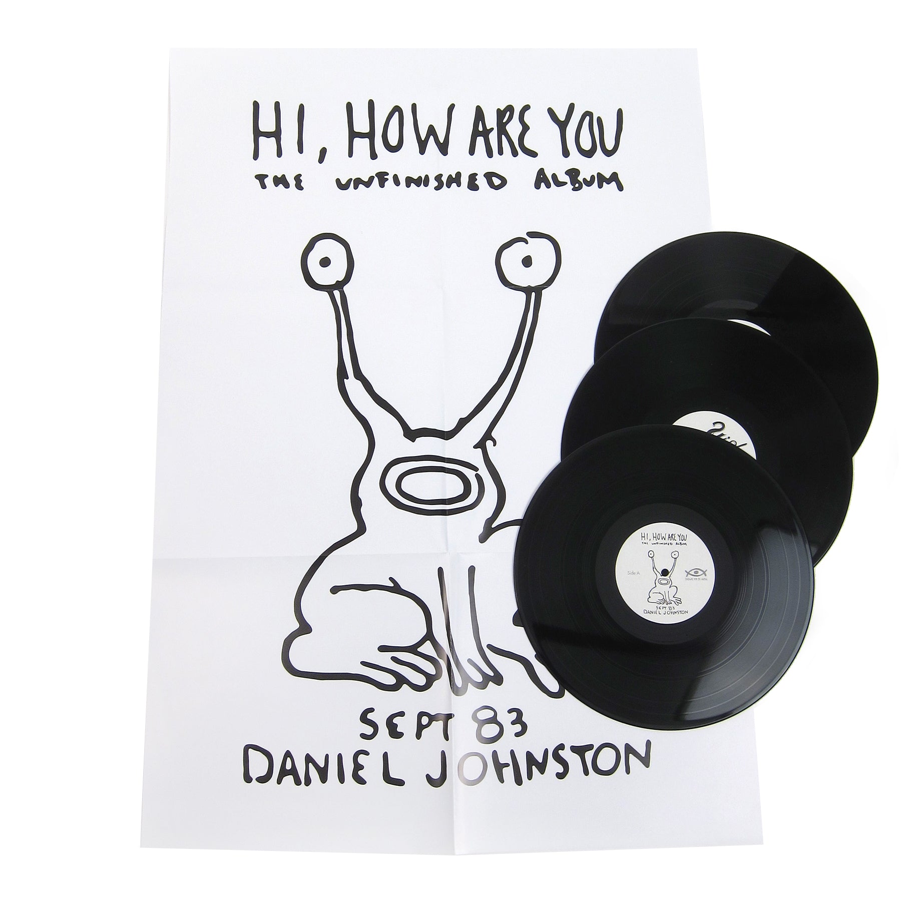 Daniel Johnston's early years are marked by his perseverance to create and record. Hampered by debilitating mental illness, he recorded 100s of songs in West Virginia, armed with his strained but melodic voice, a chord organ and a strangely out of tune piano. His recordings were committed to tape on a cheap Sanyo boombox. Hi, How Are You is arguably the greatest and most popular of these early recordings. Originally self released on tape in 1983, it has been reissued a handful of times, most notably on Johnston's own Eternal Yip Eye Music. The material is some of his most sonically varied, mixing tape and noise experiments with more traditional pop songs performed on either the aforementioned chord organ or piano. "Desperate Man" and "Keep Punching Joe" feature Johnston singing along with an instrumental LP by Johnny Dankworth. It's the simplicity of Johnston's material that makes the songs shine. They carry a dueling sense of melancholy and innocent hope, helped along by the lofi nature of the recordings and the uneasiness of Johnston's voice. There's no one else quite like him, his vision is truly his own. This triple vinyl 35th anniversary pressing includes Johnston's previous effort, Yip Jump Music (also from 1983) on 2LP, notable for being the first album to feature Johnston playing the chord organ. Comes housed in gatefold jacket with printed inner sleeves and large foldout poster.