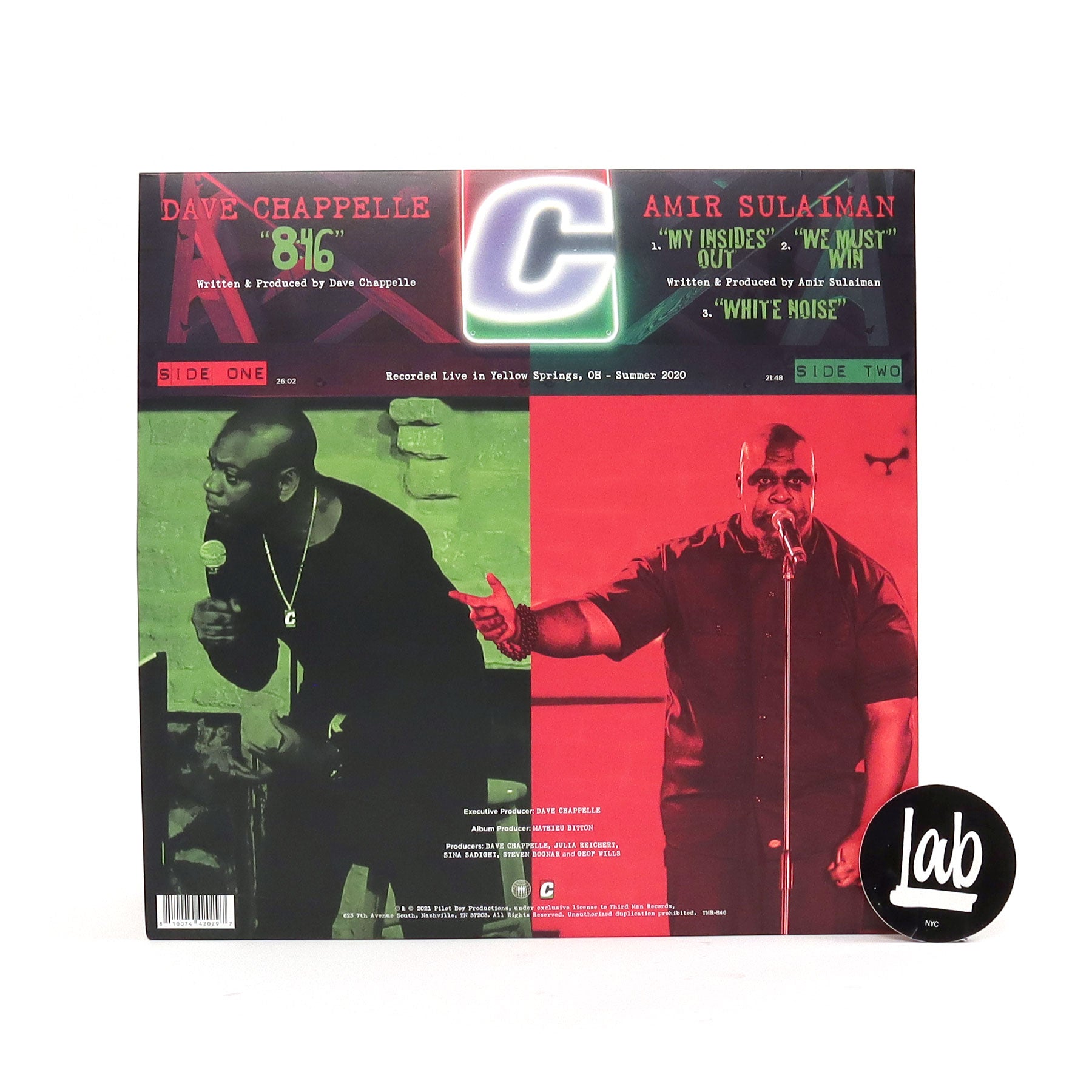 "Third Man Records is proud to release a vinyl pressing of Dave Chappelle's viral video, 8:46. The video was YouTube's top trending video of 2020 with over 30 million views on the official post and 7.5 million views on Chappelle's Instagram. The video and subsequent album, is a searing rumination in the aftermath of the murder of George Floyd that ignited worldwide outrage and led to protests on race inequality, police brutality and the criminal justice system. Filmed in Ohio on June 6, during the COVID-19 lockdown, 8:46 addresses one deadly plague, while in the grips of another. The B-side of the album features poet Amir Sulaiman's performance of 'My Insides Out' and 'We Must Win,' also recorded in Ohio. It also includes 'White Noise,' 8 minutes and 46 seconds of silence in remembrance of George Floyd and the countless victims of police brutality and systemic racism. The album cover and artwork features performance, backstage photos from Chappelle's concert as well as images from various George Floyd protests in Los Angeles, CA, all taken by Grammy-nominated artist and photographer Mathieu Bitton." - Third Man Records