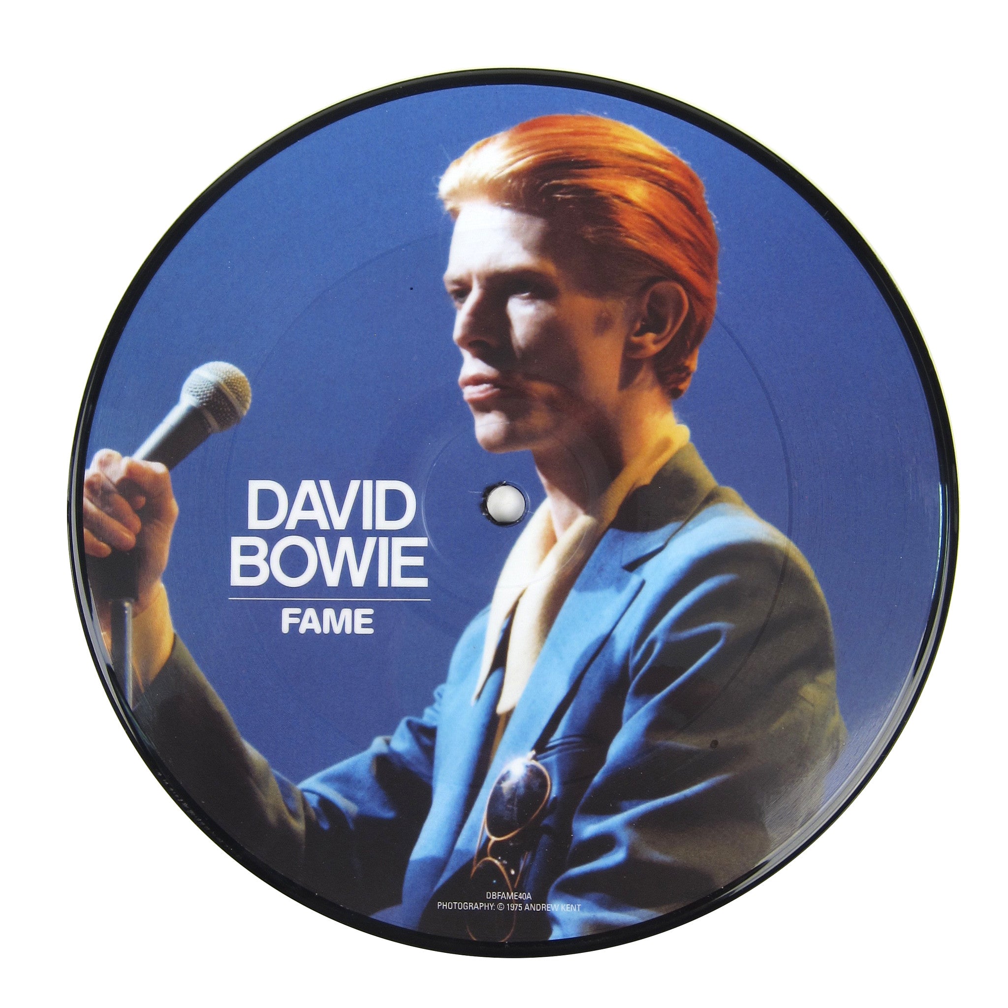 David Bowie's 1975 hit "Fame" gets an official pic disc 45 pressing! As the story goes, the track was recorded after the Young Americans sessions were mostly already concluded and Bowie happened to meet John Lennon in New York City. The two jammed together for one-day at Electric Lady Land Studios with "Fame" as the result. The song would become one of Bowie's biggest hits and the first to hit #1 on the Billboard charts in the States. 40th anniversary pressing, features the Alternative mix of "Right" on the B-side.