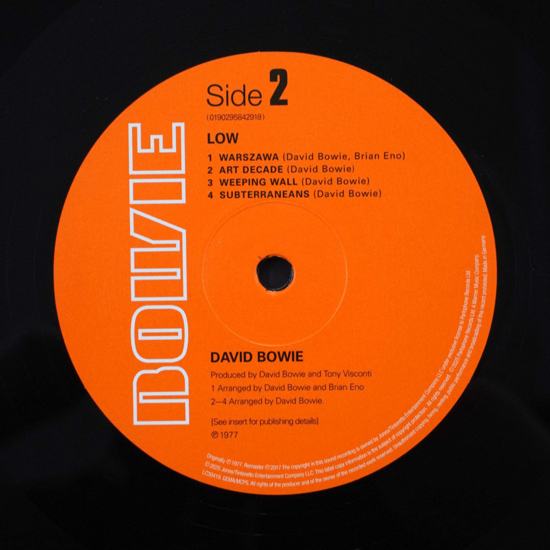 Eleventh studio album from legendary David Bowie. Low was originally recorded in 1976 following Bowie's move away from the excesses of Los Angeles. He would first move to Switzerland, before moving to Berlin with friend and singer Iggy Pop. From there Bowie got into the German music scene, including the acts Kraftwerk and Neu!. At the same time he was listening to Brian Eno's Discreet Music. Bowie and Eno would eventually meet and begin collaborating along with Pop and producer Tony Visconti. As Bowie worked on shedding the trappings of his Thin White Duke persona, he escaped into the anonymity of West Berlin and began crafting on Low. Visconti would produce with Eno adding his synth wizardry and Bowie's Station to Station band fleshing everything out. Includes the songs: "Breaking Glass," "Sound And Vision," and "Warszawa." Twelve tracks in all. Released by Parlophone on 180 gram vinyl with a printed inner sleeve.