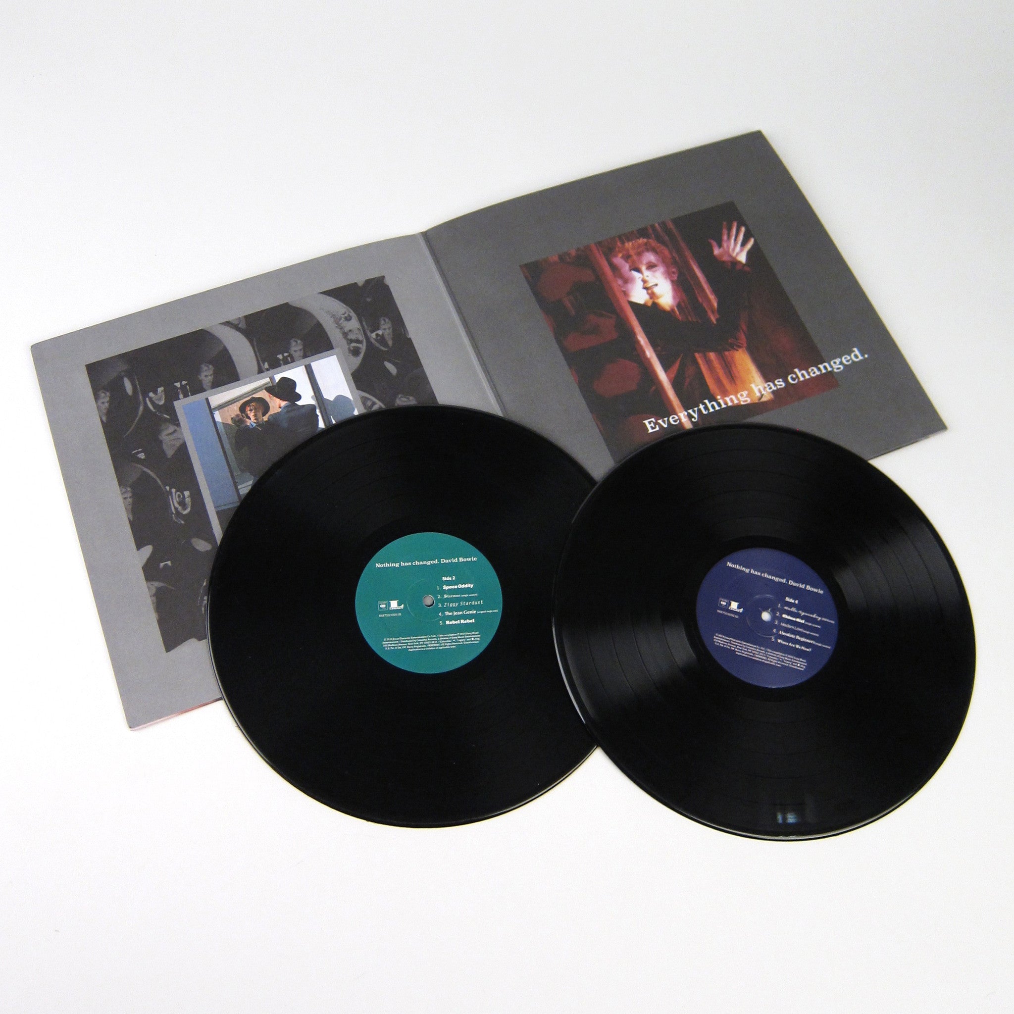 Double vinyl compilation of Bowie's biggest hits. Nothing Has Changed features everything from David Bowie you'd need to get a proper dance party started. Although it might not be a comprehensive retrospective of everything the famed artist accomplished, we get some of his most moving material all in one place. Includes the songs: "Let's Dance," "Ashes To Ashes," "Changes," "Space Oddity," "Ziggy Stardust," "Rebel Rebel," "Golden Years," "Fame," and "Sound And Vision." Twenty tracks in all. Released by Columbia on double vinyl housed in a matte gatefold sleeve.