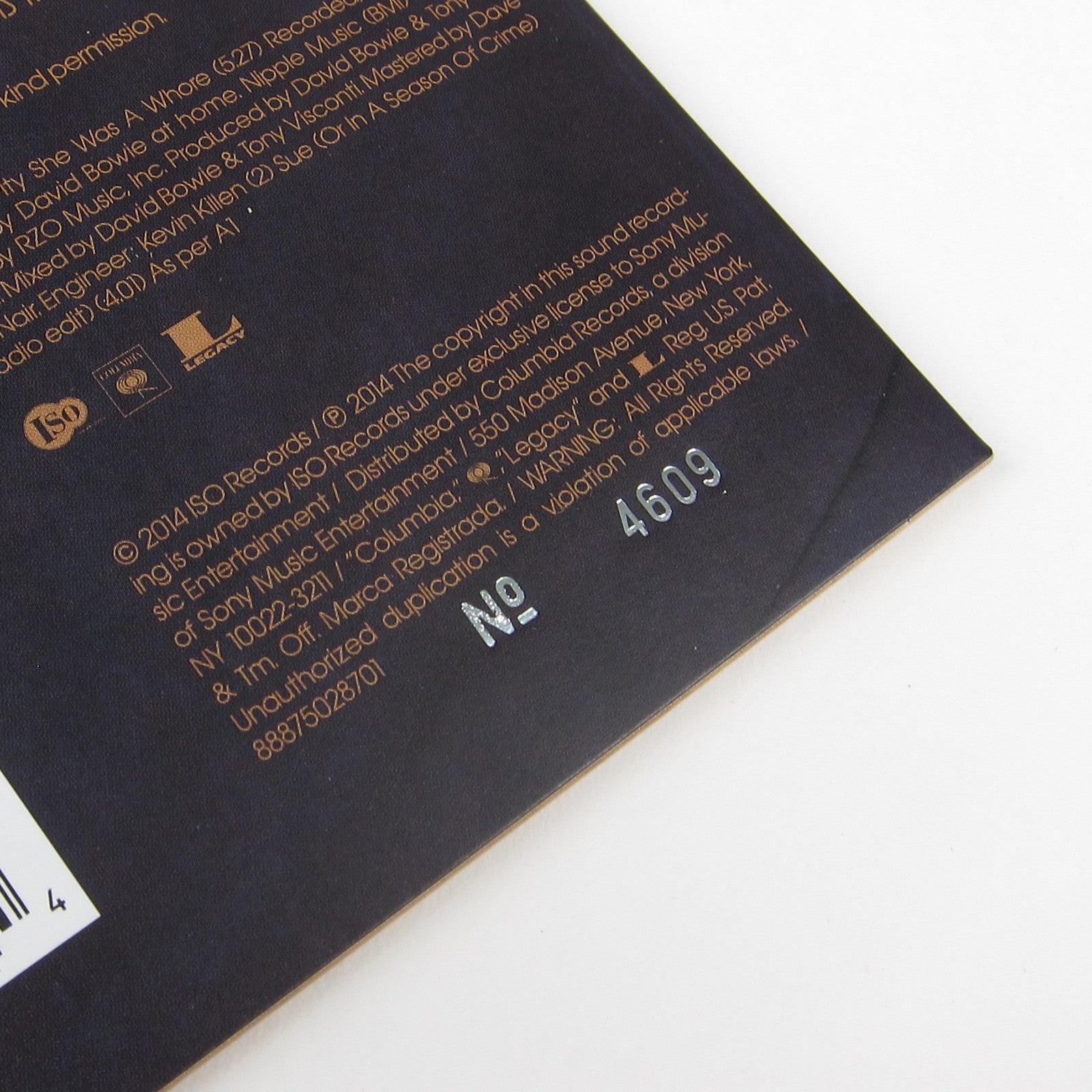 David Bowie was always able to get his fans to suspend their belief. Whether it was Ziggy Stardust, Aladdin Sane, the Thin White Duke, or his many other personas, his fans were right there with him. "Sue (Or In A Season Of Crime)" found the seasoned artist exploring epic jazz pop alongside the Maria Schneider Orchestra with longtime producer Tony Visconti at his side. Bowie explores the outer reaches of his voice while spinning a tale of lost love. The chaotic B side seems to be a cathartic moment for the story's narrator. Released by Columbia on limited edition 10" vinyl.