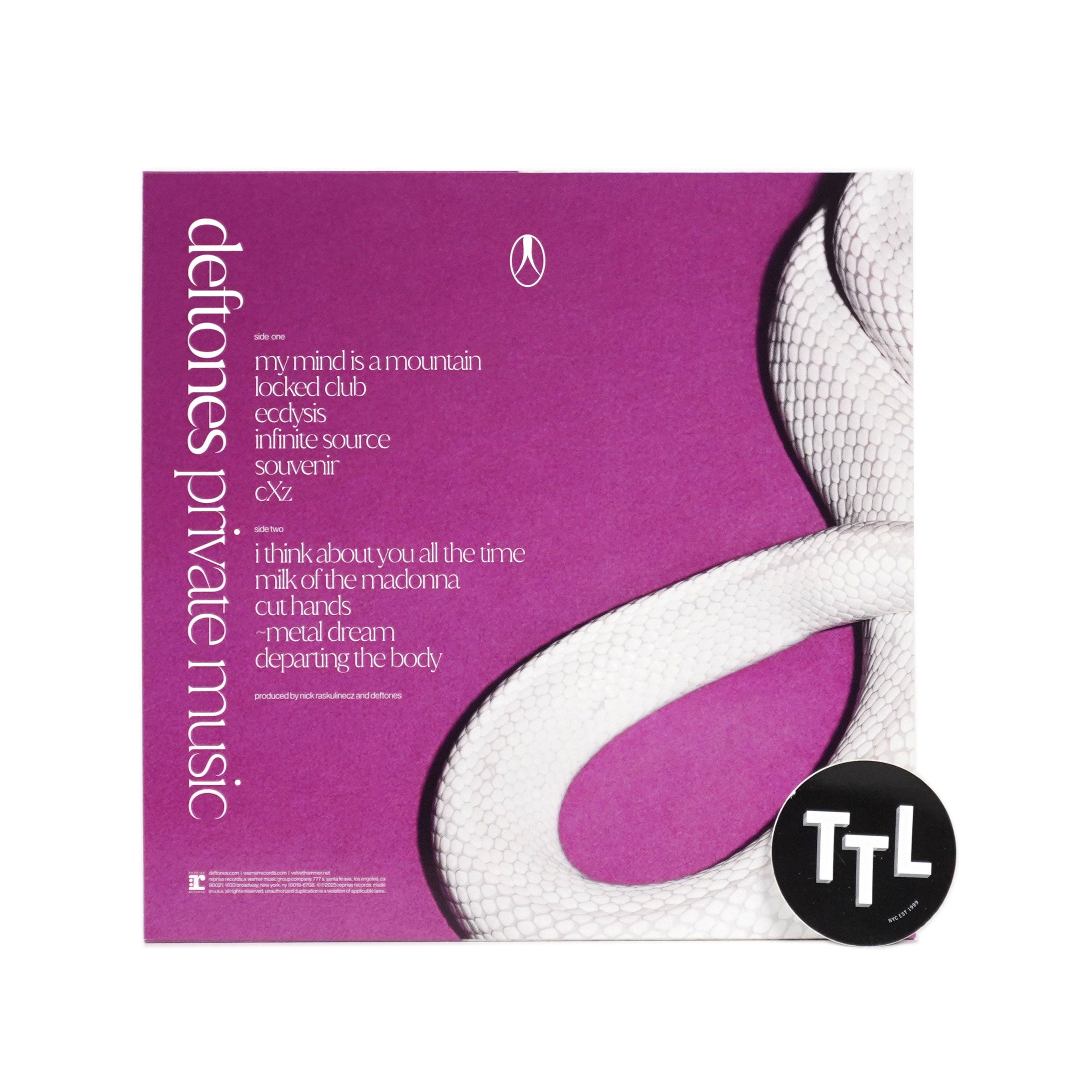 "Deftones have always defined boundless creativity in the music space. Across nine studio albums, they have carved out an unmistakable sonic identity — ferocious yet dreamlike, while making space for constant refinement and surprise. Now, decades on from the groove-forward sound of their era-defining debut, Adrenaline, and following a long line of masterpieces including 2000’s White Pony, 2010’s Diamond Eyes and 2020’s Ohms — an album that earned them their second and third Grammy nominations — they return with one of the most focused statements of their career: private music. Joining the band’s creative core of Chino Moreno, Stephen Carpenter, Abe Cunningham and Frank Delgado (as well as touring bassist Fred Sablan, who appears on the album) is producer Nick Raskulinecz, who previously worked on Diamond Eyes and 2012’s riveting Koi No Yokan. The result is a lean, masterfully paced 11-song set that plays like a new Deftones benchmark. Meditating on the beauty and peril of nature, the challenge of cultivating a positive mindset and visions of a journey beyond the physical realm, private music showcases Deftones at their most evolved. At once a psychedelic voyage and a skull-rattling wallop, it’s the latest peak in a catalog filled with immersive, emotive triumphs." - Reprise Records