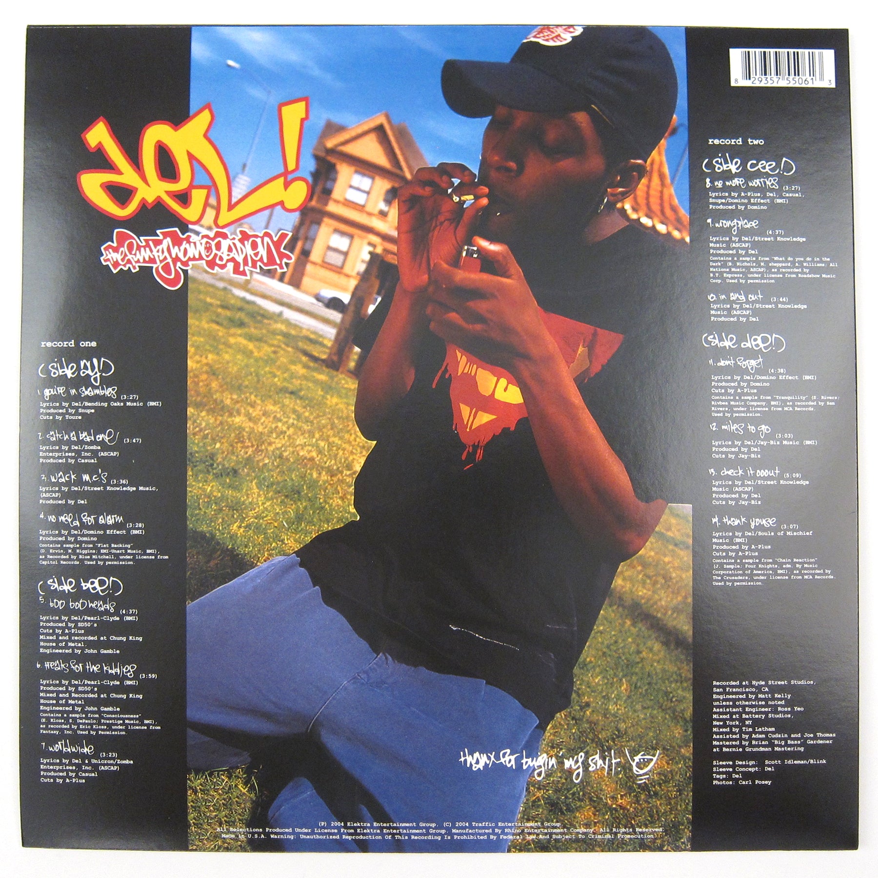 As I morph into a middle age man, aka fantasy sports stud, there's started a continual process where I weed out my vinyls. You would think the spastic, over enunciating, raver friendly cousin of Ice Cube would be the first to go, especially cause these records go for Paypal. But strangely, this LP still has a place as one of my favorite emcee records (all the hardcore kids go: Kool G Rap! Rakim! Biggie!). An aged Del is annoying, but a young, Sony boom box with Hiero stickers toting Del was one in a scrillion. The word play, rhyme schemes and enthusiasm in every one of these tracks is like nothing else. And as I sit listening to my instrumental white label of this record, you can chalk it up as one of the overlooked west coast production pieces. Don't believe it? Checkout tracks like "Catch A Bad One," "Wrongplace," "Wack Emcees," "Don't Forget," and "No More Worries." My favorite though is the proto-Quasimoto track "Worldwide" featuring the talented Unicron. I ain't gonna lie, for the longest time I thought that was Del's protege, but it turns out it was just a filter effect. "Boo Boo Heads," the proto-No Pigeons, was also a favorite, rhyming "Murda" with "Word Up." Marv Albert says "Yesss!" A great repress with original double vinyl intact. Hurry up and buy.