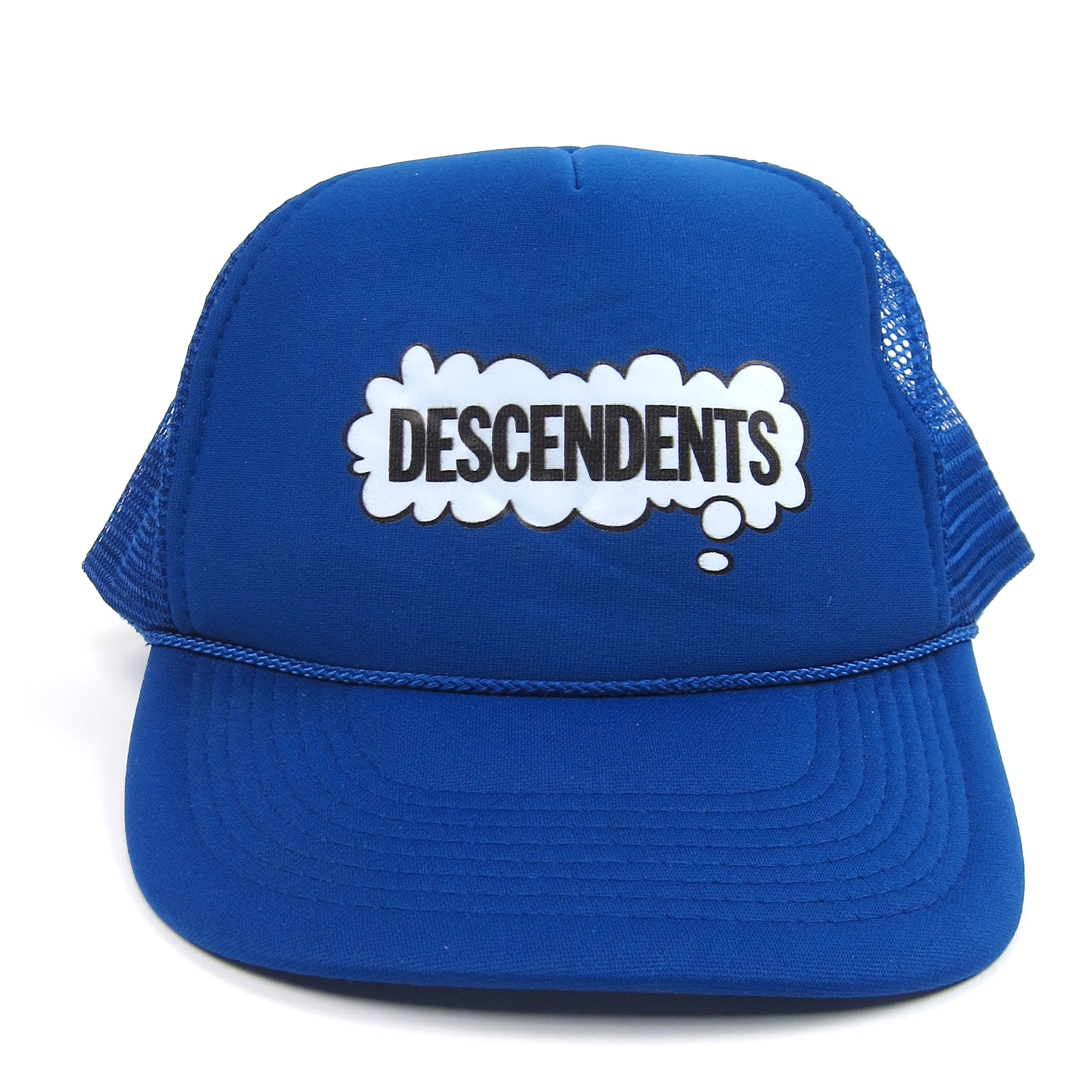 Cover your noggin with this official Descendents hat! The legendary punk group's logo is added to a thought bubble and printed on an all blue trucker-style cap. Adjustable back closure, one size fits most.