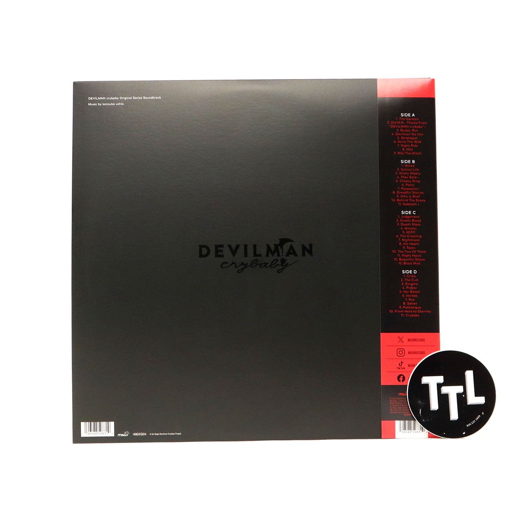 "Dive into the wild world of DEVILMAN Crybaby with its epic original soundtrack vinyl, capturing Akira's transformation into Devilman. Kensuke Ushio's soundscape blends human emotion with demonic power in an intense ride. The release package includes a gatefold jacket with reflective ultraviolet coating on the front cover in the shape of the titular Devilman and the series logo on the rear cover with an aqueous coating. The two discs are an ominous hand-mixed semi-translucent red and black galaxy blend coloration. The release also includes a 12"x12" credit insert with lyrics for 'Devilman no Uta,' and exterior Obi-strip. This soundtrack is more than just music – it's a slice of the DEVILMAN Crybaby universe for fans and collectors alike." - Milan Records