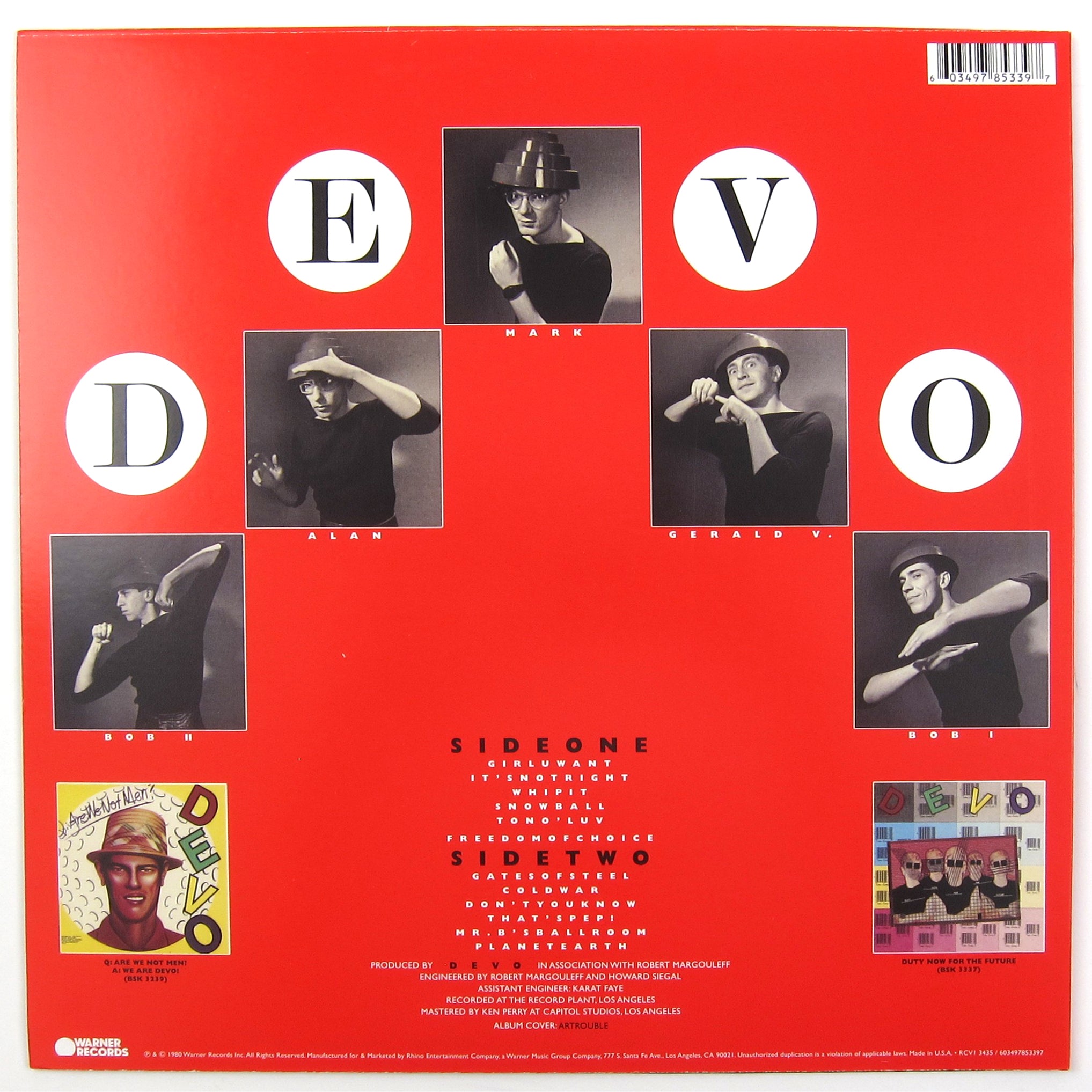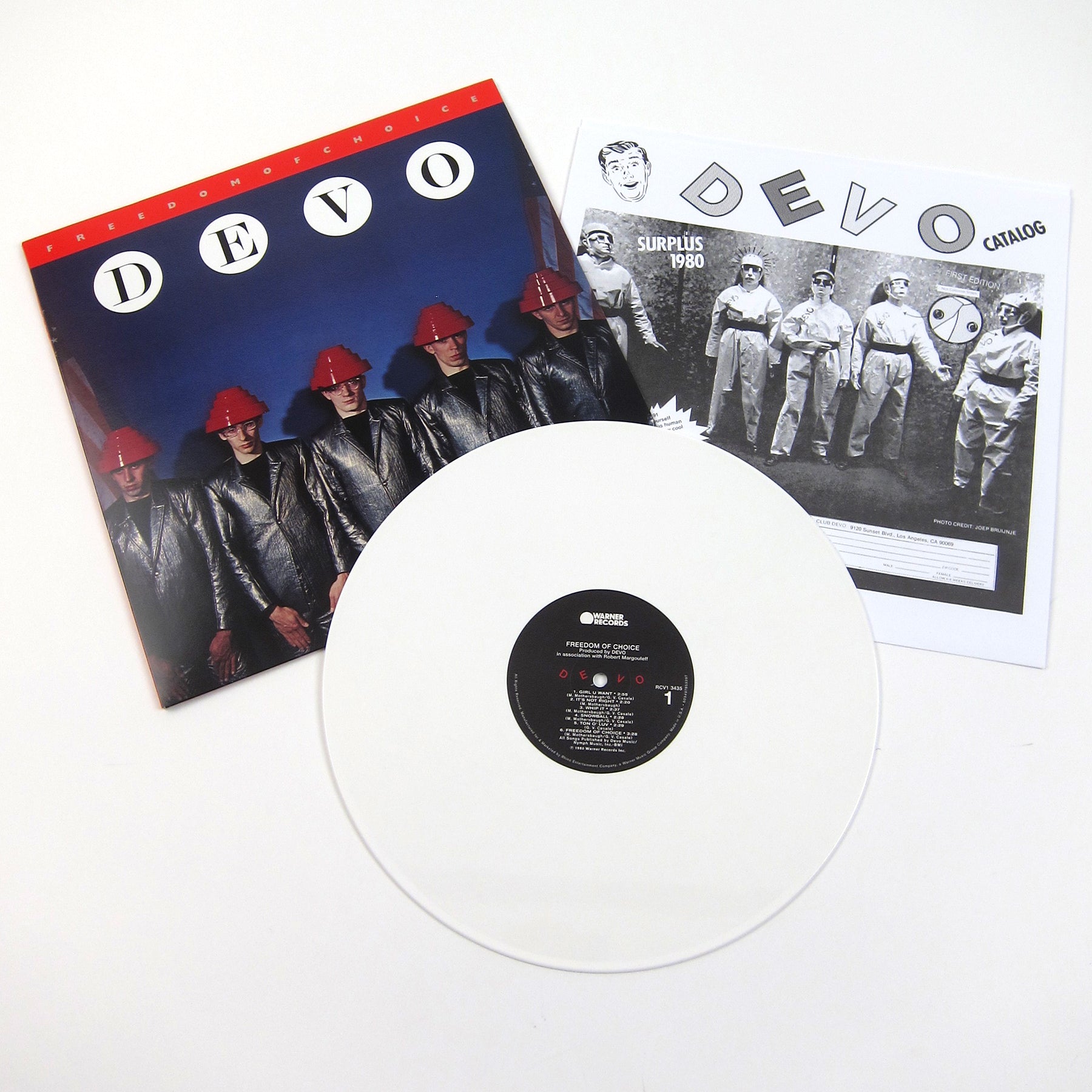 Third studio album from Ohio's Devo. Freedom Of Choice was originally recorded in 1979 and featured more synth sounds than their previous albums. The band worked with Robert Margouleff (of Tonto's Expanding Head Band) to produce the album. Includes the songs: "Girl U Want," "Whip It," "Freedom of Choice," and "Don't You Know." Twelve tracks in all. Released by Rhino Records on limited edition white vinyl.