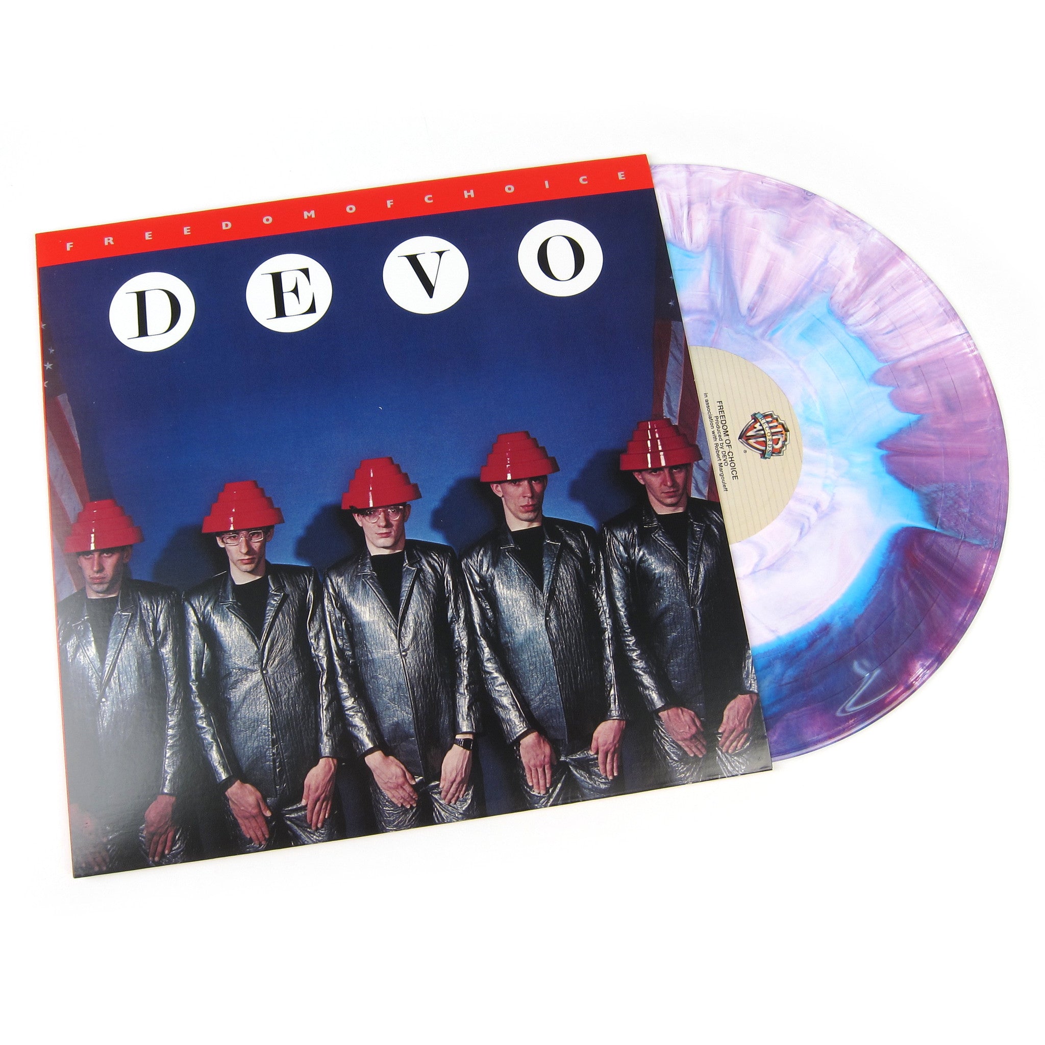 Third studio album from Ohio's Devo. Freedom Of Choice was originally recorded in 1979 and featured more synth sounds than their previous albums. The band worked with Robert Margouleff (of Tonto's Expanding Head Band) to produce the album. Includes the songs: "Girl U Want," "Whip It," "Freedom of Choice," and "Don't You Know." Twelve tracks in all. Released by Rhino Records on limited edition red, white and blue splatter vinyl (due to the pressing process each record seems to have its own unique combination of colors [i.e., red and blue make purple]).