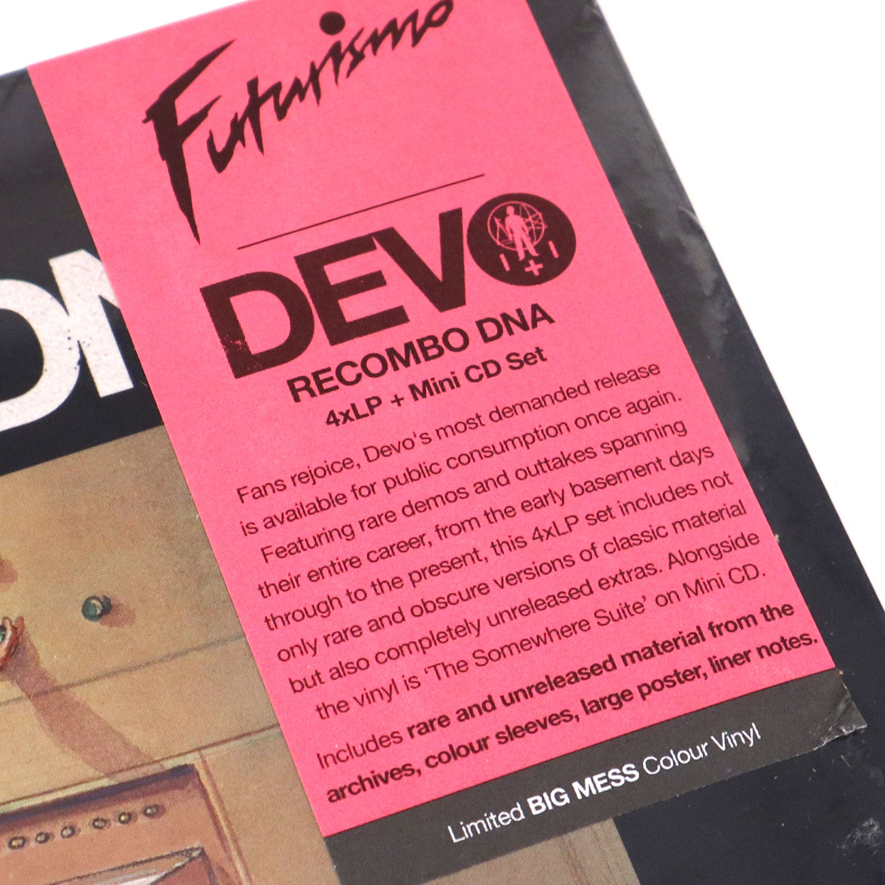 "Spuds rejoice. After years of requests, Futurismo are thrilled to announce a brand new limited pressing of the DEVO's incredible Recombo DNA 4xLP with Mini CD Set. For decades Devo have been working non-stop at Recombo DNA Laboratories on a new kind of research to keep up with the mutating world around us. That extensive research is now ready for public consumption once again. Futurismo were the first to bring you this on vinyl and now they present unhindered access into Devo's labs, documenting the scientific analysis and demonstrations as conducted by the band between the years 1977-2008. This tireless research has manifested itself in Recombo DNA... an unmissable collection of studio demos and unreleased rare tracks that span Devo's entire recording career, from their original basement days to their famed 'Freedom Of Choice' era, right the way through to unused demos from their last studio album. You may know the track 'Baby Doll' but do you know it's original incarnation as 'Satan'? If you submit to the findings of Recombo DNA Labs you will, Futurismo's version of this compilation included six bonus tracks taken from the archives that had never been released, or even heard before." - Futurismo