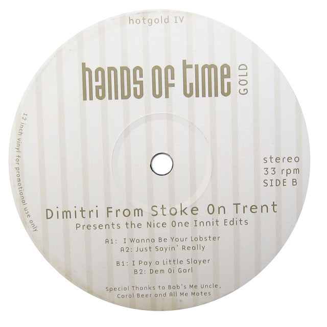 Dimitri From Paris gives up one of his most in-demand cuts in "I Wanna Be Your Lobster," a great Prince edit with a live section spliced onto the beginning. But that's only the first lick. You get two great soul sister edits from the Velvelettes and Aretha Franklin, plus a He-Manic psychedelic edit of Them / Van Morrison's monster rock jam "Gloria." Must purchase, recommended.