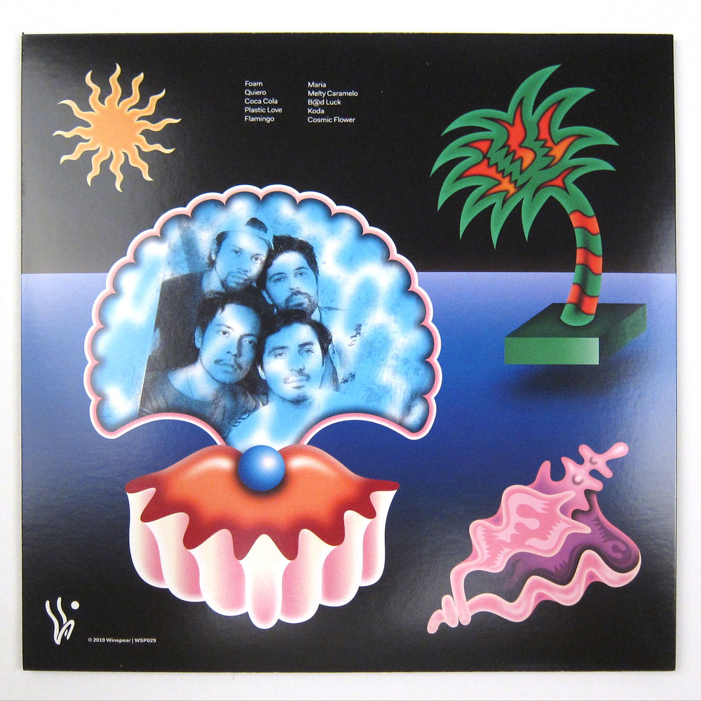 Divino Niño is a Chicago-based indie rock group that makes charmingly soulful, meditative, psychedelic, and at times bilingual, music. Guitarist Camilo Medina and bassist Javier Forero met as kids in Bogota, Columbia, reconnecting by accident when both of their families moved to Miami. While studying at the School of the Art Institute of Chicago, they met guitarist Guillermo Rodriguez and drummer Pierce Codina, finishing the quartet. Opening track “Foam” is classic Chic guitar, quirky keyboard flourishes, and wistful lyrics. “Queiro” is dizzy flanged guitars and reverberating keyboard vamps, “Flamingo” is tinker toy drums and hazy keyboard melodies. The album closes with the restrained psychedelia of “Cosmic Flower”, megaphone vocals and keyboard blur at just the edges, sorta like you just did a microdose of something fun. The album artwork was designed by Camilo from the group and reminds this author of a fresh, private press take on the ground well-trod by the likes of Keith Rankin and Robert Beatty. This record is pressed on limited edition transparent orange vinyl and includes a printed inner sleeve with photos and lyrics.