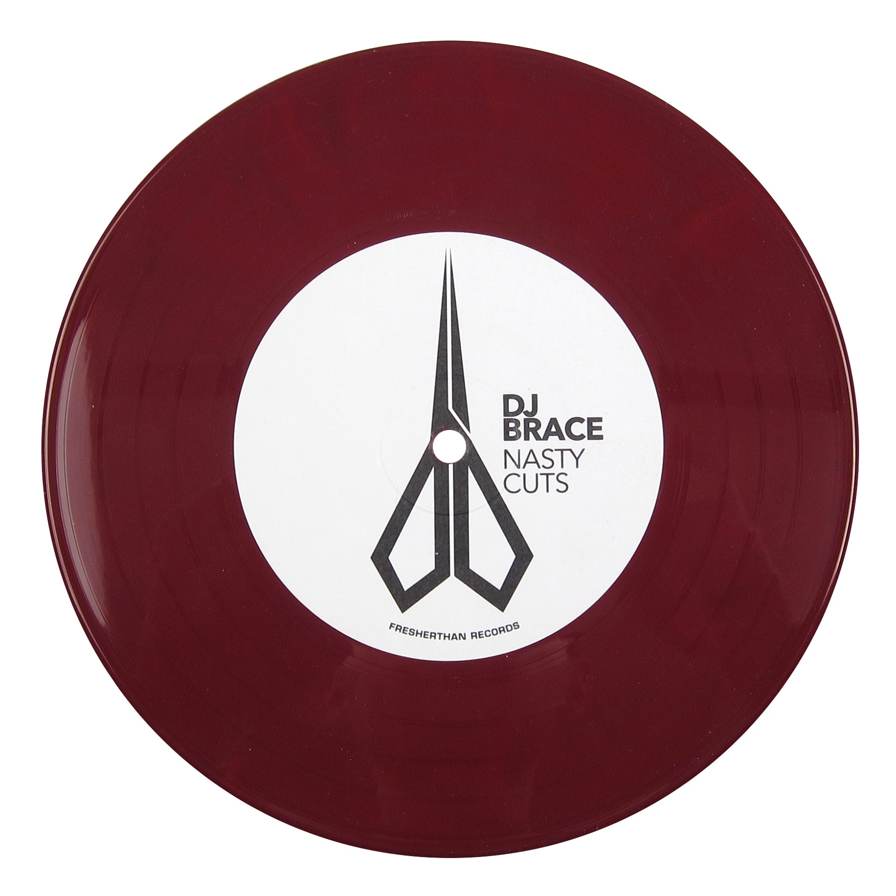 Cut like a guillotine. DJ Brace coming correct with another battle 45 reload for the portablists out there. For Nasty Cuts (follow up to 2016's Close Cuts), the three time DMC Online World Champ delivers 8 skipless loops (7 phrases and 1 drums loop) for your scratching pleasure. As expected, the sounds are fresh and diverse, perfect for throwing into your cut session or battle routine. Burgundy colored vinyl pressing.