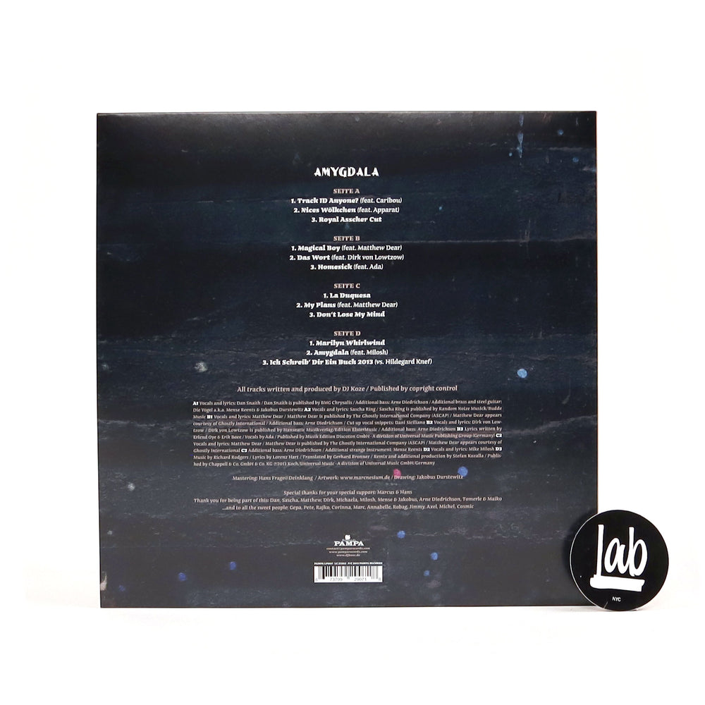 Massive full length from DJ Koze! Amygdala has been garnering rave reviews all over the place, from the most fickle of electronic music sites to the local paper your mom reads. It's definitely going to be topping at least a few best of lists once the end of the year rolls around. Once you have a chance to listen to the tracks you'll know exactly why. Koze has been in the game for nearly 15 years and wherever he's gone he's brought along a sense of warm psychedelia. Whether it's the hip hop of his early days or his minimal techno heyday that element has always been present. The album is being presented as the German producer's own Sgt. Peppers and while that may be an inflated comparison it's a rather fitting one. While Sgt. Peppers aimed to rebuild rock, Amygdala takes a similar approach to techno, proving that the genre can be fully captivating from end to end. Granted, the majority of the songs feature a softer edge to them than any floor filling techno banger. Koze's creative use of vocalists like Caribou and Matthew Dear add a depth of personality that can be missing from many electronic albums. There's a certain amount of mature restrain present as well. With its subtle take on techno Amygdala is sure to please. Limited edition 2LP pressing, includes 7" with bonus tracks "NooOoo" and "Auroville."