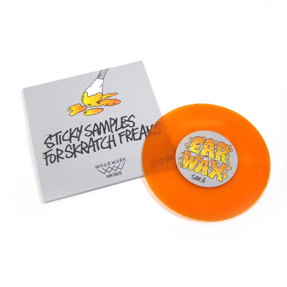 UK's DJ Woody returns with another choice reload for the portablists. On Ear Wax, the two time world champ hits us off with sixteen original skip-proof skratch phrases so you can get loose on the porta-cut. The samples are programmed to hit on beat at 100BPM (and 83.33BPM on the flip) with two longer sentences included for more scratching pleasure. Comes pressed on see-through orange vinyl and is housed in a custom pic sleeve featuring artwork from skate art veteran Mark "Fos" Foster (Toy Machine, Santa Cruz, etc).