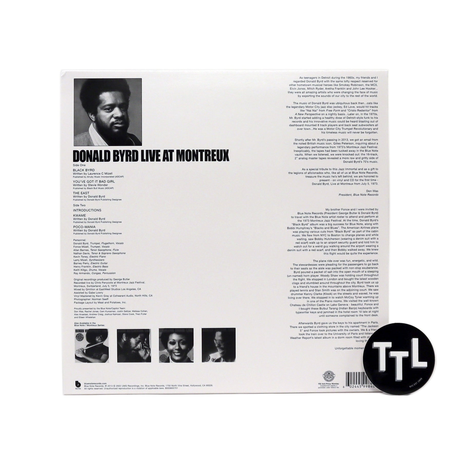 "In July 1973, Blue Note Records headed to Montreux, Switzerland to showcase several of the label’s stars at the Montreux Jazz Festival. Produced by Blue Note President George Butler, live albums all titled Live: Cookin’ with Blue Note at Montreux followed from vibraphonist Bobby Hutcherson, organist Ronnie Foster, flutist Bobbi Humphrey, and vocalist Marlena Shaw, but one of the performances by trumpeter Donald Byrd remained unreleased in the Blue Note vaults, until now. That summer, Byrd was fresh off the release of his hit crossover fusion album Black Byrd, the first of his innovative and incredibly successful studio collaborations with producer Larry Mizell. But in a live setting the band had a rawer, harder edge, as this searing set attests. Byrd led a 10-piece band that included Larry Mizell on synthesizers, Fonce Mizell on trumpet and vocals, Allan Barneson tenor saxophone and flute, Nathan Davis on soprano and tenor saxophone, Kevin Toney on electric piano, Barney Perry on electric guitar, Henry Franklin on electric bass, Keith Killgo on drums, and Ray Armando on congas and percussion. The set list includes Larry Mizell’s tune 'Black Byrd' along with otherwise unrecorded Byrd originals like 'The East,' 'Kwame,' and 'Poco-Mania,' as well as an excellent cover of Stevie Wonder’s 'You’ve Got It Bad Girl.' The vinyl release is all-analog and mastered by Kevin Gray." - Blue Note Records
