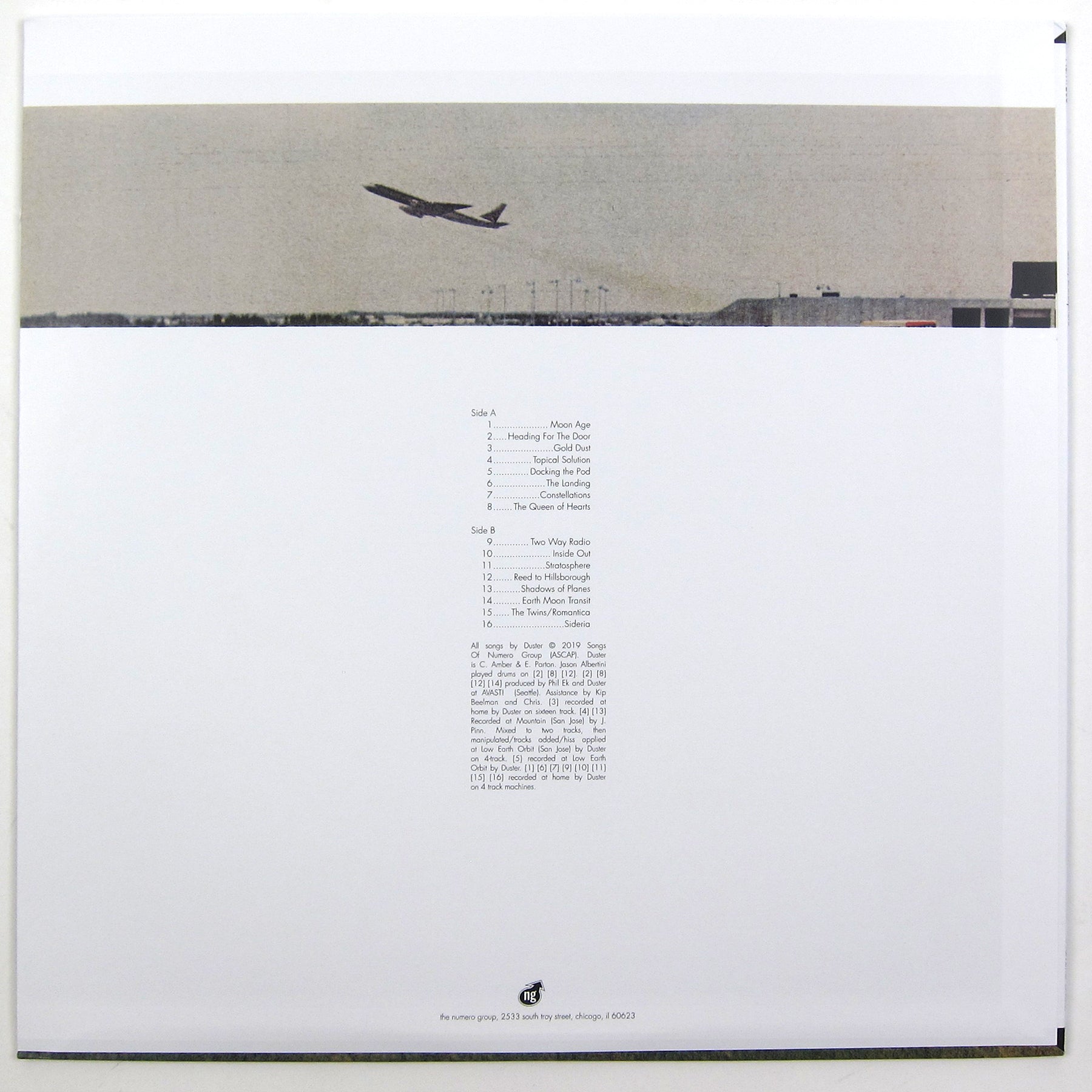 “What has happened to us? What will happen to the vampire cult?” Stratosphere is the coveted debut album from San Jose slowcore / space rock / “experimental depressed music” trio Duster. While their space rock progenitors spewed sprawling, reverb-soaked instrumental dirges as a means to tickle the urges of their childhood sci-if nerddom, or to provide a backdrop for their burnout homies’ sophomoric drug trips, Duster were clearly launching themselves into space as a means to escape the heartache and banality of life in shithole Silicon Valley circa the dot com boom. And while the lyrics are a reflection of their musical and physical surroundings, they transmit as much gut-wrench in somber instrumental “Queen Of Hearts” as any of the songs with words. You can hear Clay Parton, Canaan Dove Amber and Jason Albertini literally losing themselves in the music… more often than not, the vocals are transmitted via what sounds like a crackly radio filter; the guitar doubles as lost frequency turbulence on “Shadows Of Planes.” Perfect soundtrack for gazing out into the hot summer night sky and wondering “what’s the point???” - “Heading For The Door,” “Inside Out,” “Stratosphere,” “The Twins / Romantica,” “Queen Of Hearts” and “Earth Moon Transit” are some highlights, but you should really strap in and experience the full flight program for best results. This stunning Numero Group reissue mirrors the original 1998 LP tracklisting, ommitting “Echo Bravo” which is only available on the original CD edition or the long-gone 4LP boxset. Housed in high-quality tip-on sleeve, recommended.