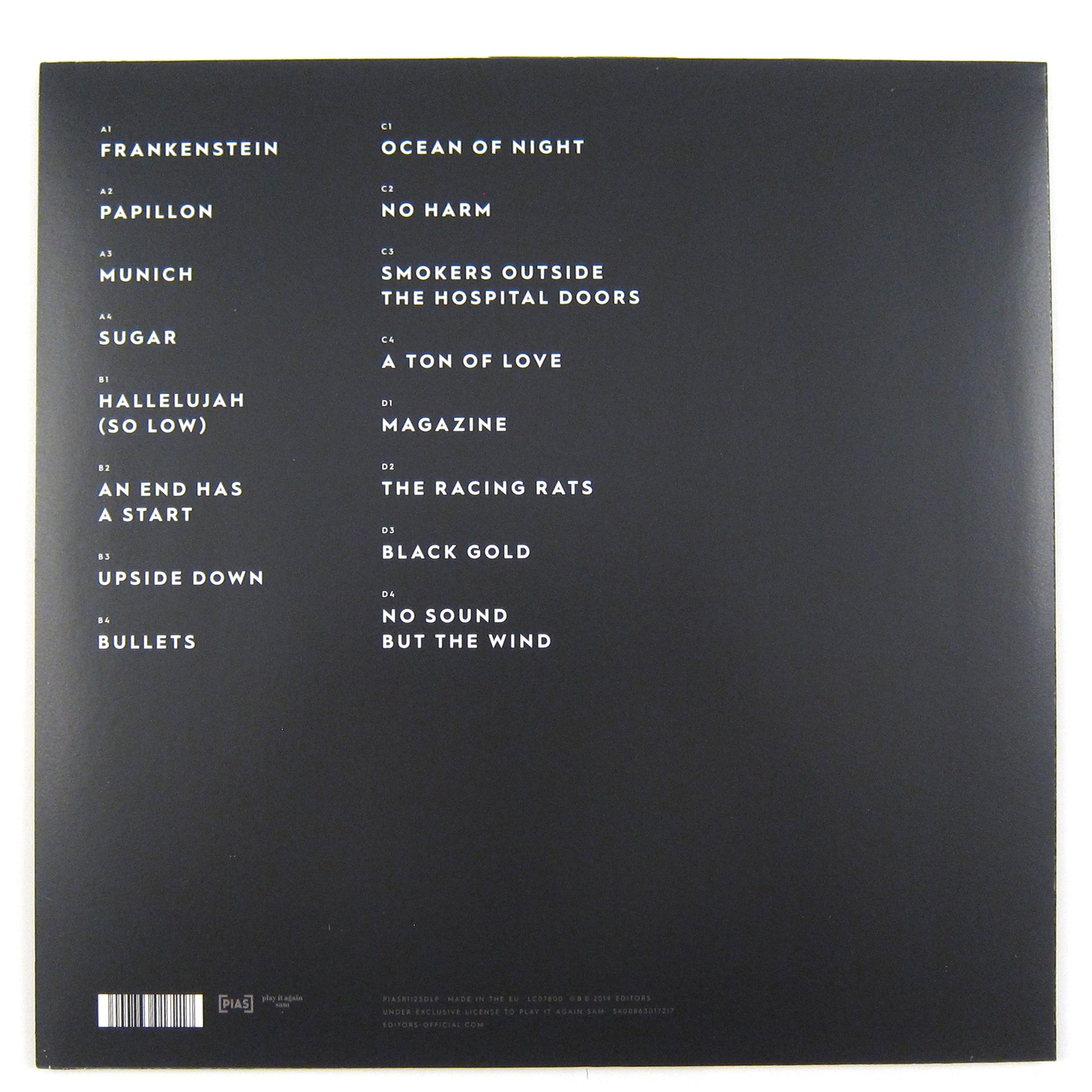 Editors are a post-punk revival band originally formed in 2002, Contemporaries of acts such as Franz Ferdinand, The Arctic Monkeys, and The Bravery, their sonics bring to mind the likes of Echo & The Bunnymen, Joy Division, and Interpol, and U2. Their Mercury Prize nominated debut album The Back Room was released in 2005, which was followed by the 2007 UK #1 An End Has A Start. The group has been a mainstay of festivals and headlining gigs, with frequent TV appearances and appearances on endless film soundtracks and television shows in the UK and abroad. Features 16 tracks over 2 discs, including "Frankenstein", "Papillon", "Munich", "Upside Down", and more. This LP is pressed on limited edition white vinyl and includes printed inner sleeves.