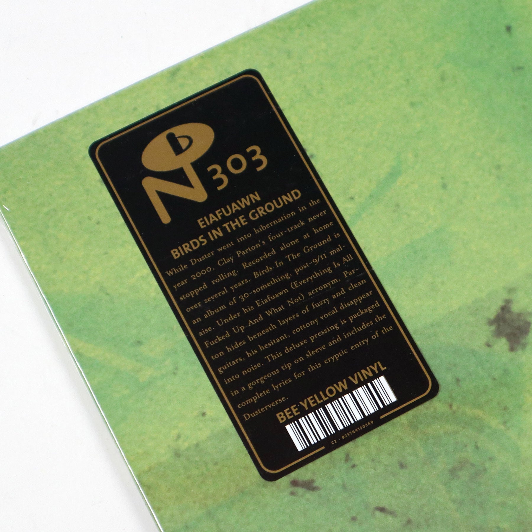 "While Duster went into hibernation in the year 2000, Clay Parton's four-track never stopped rolling. Recorded alone at home over several years, Birds In The Ground is an album of 30-something, post-9/11 malaise. Under his Eiafuawn (Everything Is All Fucked Up And What Not) acronym, Parton hides beneath layers of fuzzy and clean guitars, his hesitant, cottony vocal disappear into noise. This deluxe pressing is packaged in a gorgeous tip on sleeve and includes the complete lyrics for this cryptic entry of the Dusterverse." - Numero Group