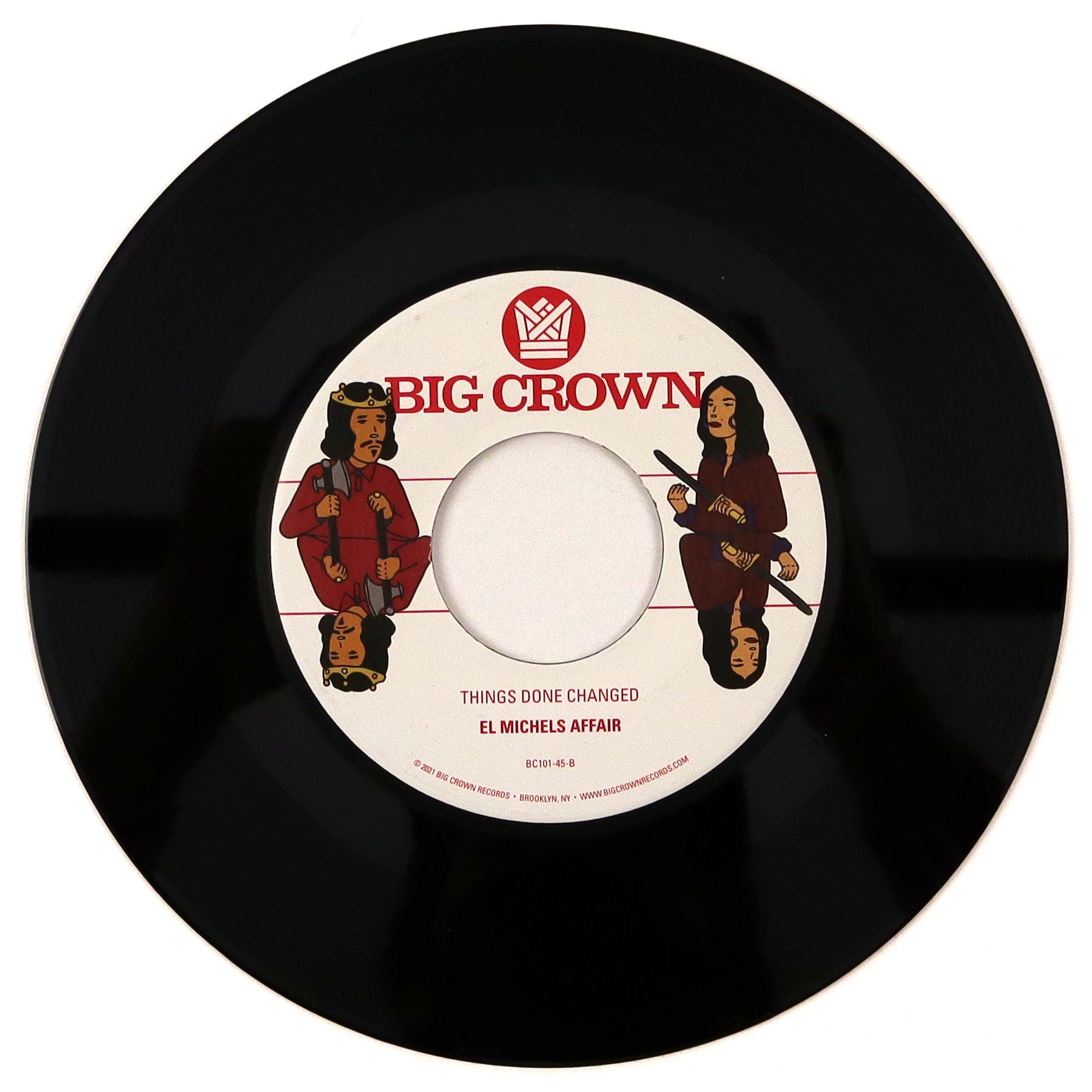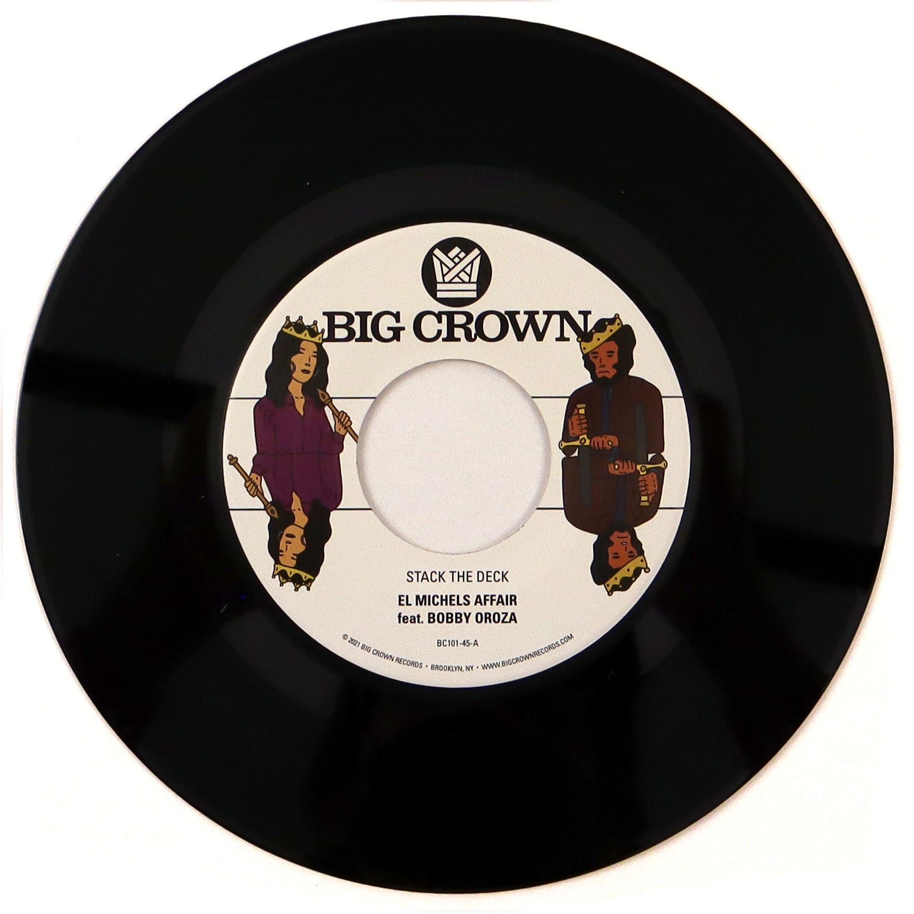 "Big Crown Records is proud to present this rock solid two-sider from El Michels Affair. This 7” is part of a new Big Crown X El Oms collaboration that includes a custom deck of playing cards and a t shirt series illustrated by El Oms. The labels of this 45 are pulled from some of the King & Queen illustrations contained in the deck.To go with this project, El Michels teamed up again with Bobby Oroza for the A side tune which plays along with the collab theme called 'Stack The Deck'. These two proved their chemistry on 2020’s 'Reasons' which became a fast favorite around the globe. This time El Michels comes with a heavier more orchestrated track that Bobby finds the perfect groove on as he plays up the gamble of love.The B side is a speaker smashing cover of the late, great, Notorious B.I.G.’s 'Things Done Changed' from his Ready To Die album. El Michels Affair stays close to the tone of the original Easy Mo Bee production but makes it their own with their signature horns and cinematic grit." - Big Crown Records