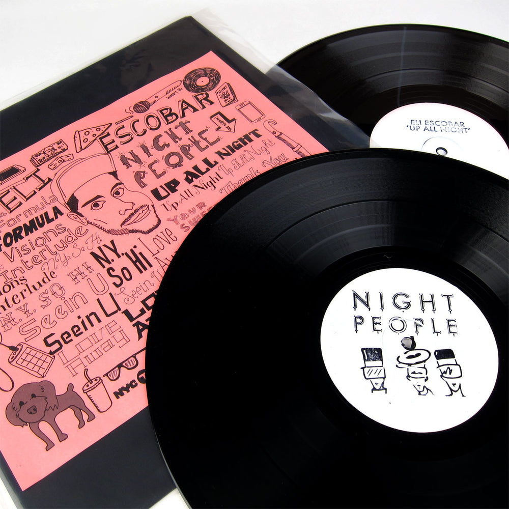Lab Exclusivo! Debut full length from longtime Lab homie Eli Escobar on the freshly minted Night People label. Eli's had a long history of putting out the jams on labels as eclectic and diverse as Bobbito's legendary Fondle Em label, Plant Music, and even the Lab's own Money Studies imprint. Add that to the fact he's been DJing NYC hot spots since forever (Tiki Disco or Le Bain anyone?) and it's safe to say Eli's more than well versed on the art of moving butts. Up All Night is the culmination of all this experience - a fun yet sophisticated excursion through realms of house and disco styles through the ears of a true dancefloor veteran. From the funky disco bump of "Visions," to the heavy Sylvester freakage of "NY So Hi," and the soulful house vibes of "Seein U," you can bet Mr. Escobar's got a little somethin' somethin' for every dancefloor. More heat comes by way of the Detroit-tinged "Your Sweet Love," the euphoric "Love Away," and the triumphant, synth-laced title track. Shout out to Blu Jemz for droppin' these off fresh from the presses. Super limited hand stamped copies with insert featuring artwork by fellow Lab alum Woody Fu. It's a family affair. Recommended.