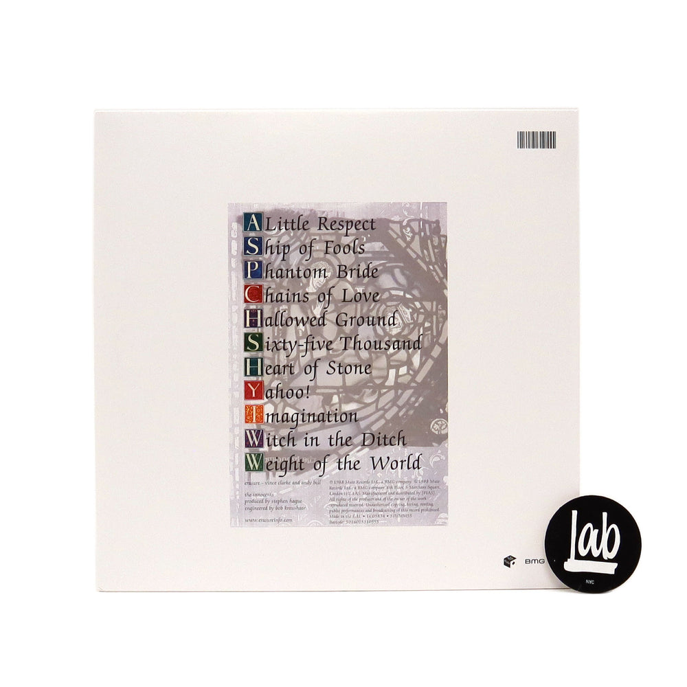 UK synth-pop duo’s breakthrough album reissued! It took three albums for Erasure to reach the same level of popularity as Vince Clarke’s former groups Depeche Mode and Yazoo, but with 1988’s The Innocents, Clarke and singer Andy Bell scored their first number one hit on the UK charts. To date, it’s still their best-selling record and for good reason—Side A alone has back-to-back bangers "A Little Respect,” "Ship of Fools," "Phantom Bride," and "Chains of Love.” The more miscellaneous Side B is also filled with its fair share of synthy jams, such as the ABBA-esque “Imagination.” Another underrated track, “Yahoo!,” both references Clarke’s earlier group and the religious themes reflected in the album’s cover art, which was inspired by a stained glass window at the Chartres Cathedral in France. Overall, The Innocents is a synth-pop classic on the level of Pet Shop Boys' Actually or Soft Cell’s Non-Stop Erotic Cabaret. 11 tracks on 180g black vinyl.