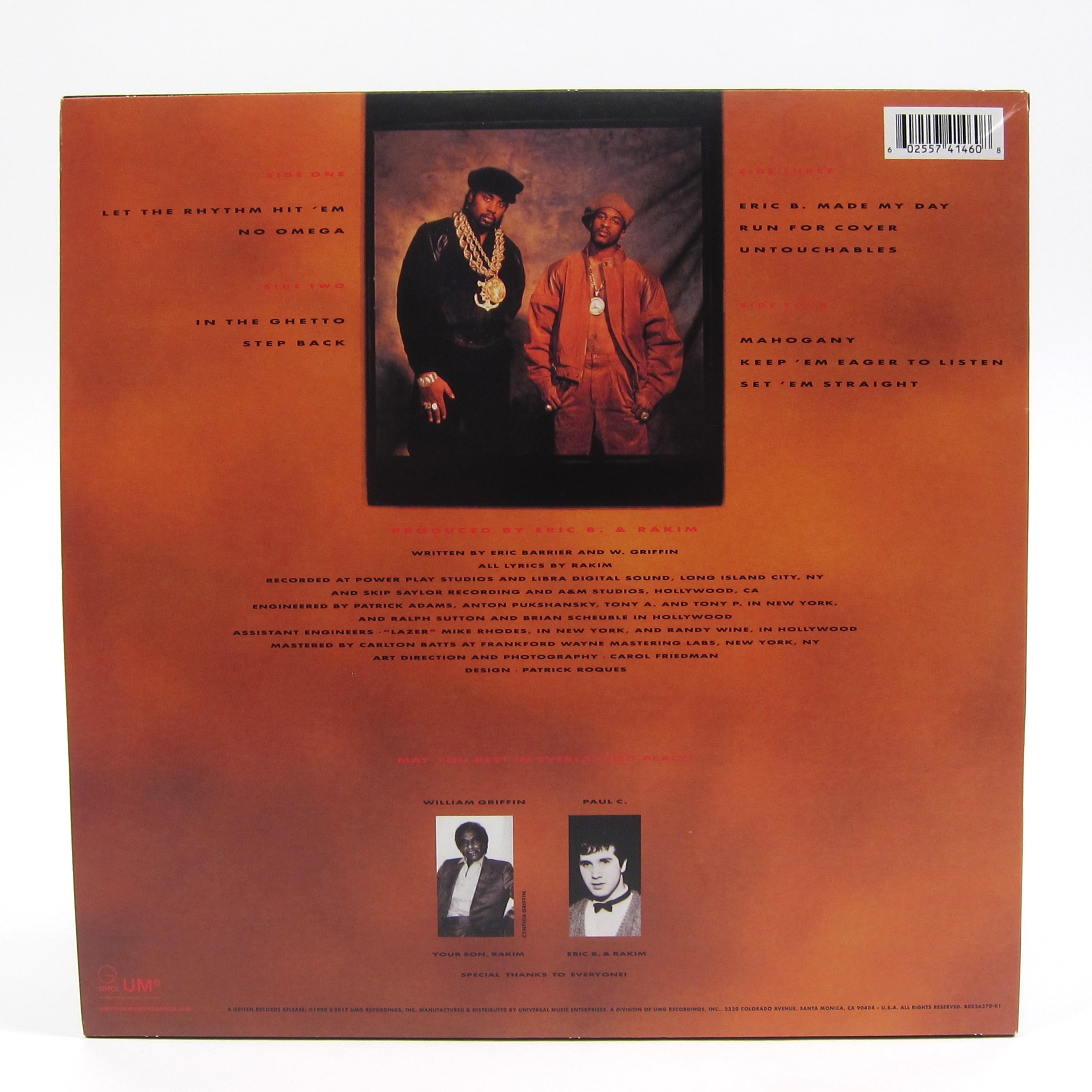 Although Let The Rhythm Hit 'Em didn't contain popular singles as Eric B. & Rakim's previous two albums did, heads have always recognized the cohesiveness of the record (s/o Patrick Adams on engineering duties). The God MC takes an even more thought-provoking, aggressive stance w/ his lyrics, and the beats range from the hard-hitting ("Let The Rhythm Hit 'Em) to the smoothed out, soul-sampling "In The Ghetto." The record also received the coveted 5-mic rating from The Source, and at the time of the decision there was only one other of the same caliber, A Tribe Called Quest's People's Instinctive Travels and the Paths of Rhythm (the publication would, of course, award other albums the same rating later on). Check out "Run For Cover," "Mahogany," and of course, the aforementioned tracks.