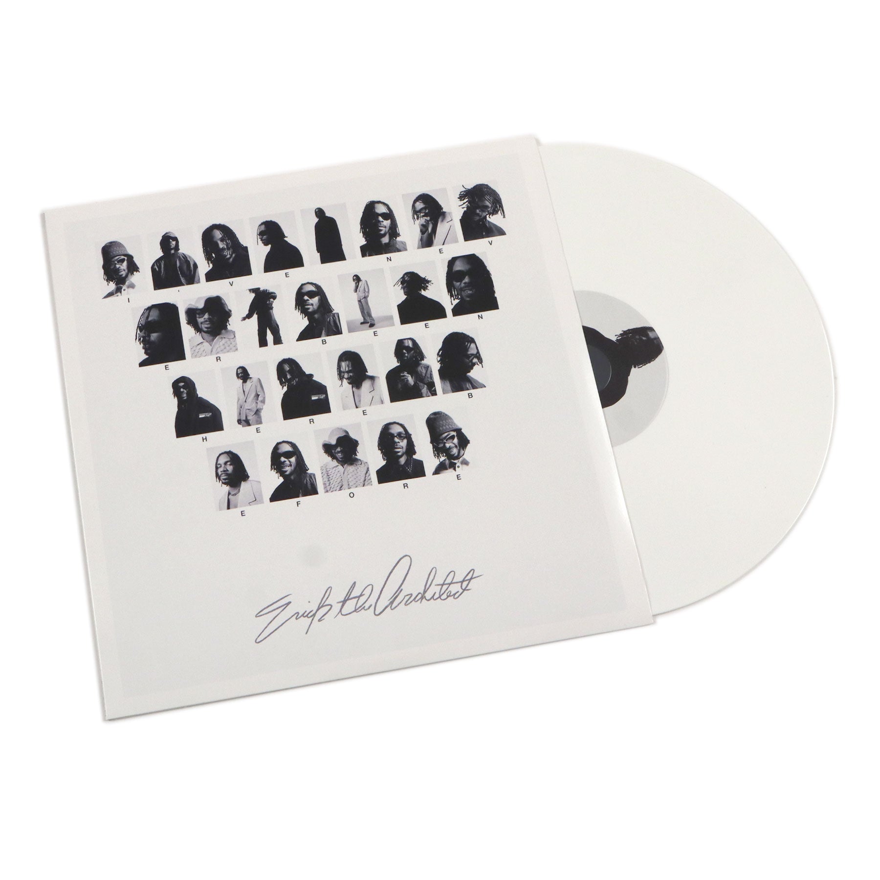 • "I've Never Been Here Before is Erick the Architect's highly anticipated solo LP debut. The album features 16 tracks, a deeply personal and powerful work that explores themes of fearlessness, Black resilience, beauty in darkness and unity over a thrilling mix of hip-hop, soul, dub, psych and beyond. Several years in the making, Erick crafted it in his Los Angeles home studio, and it features several longtime collaborators and new friends: Joey Bada$$, Westside Boogie, George Clinton, Channel Tres, Kimbra, Lalah Hathaway, RÜDE CÅT, Boy Boy, Pale Jay and FARR. Also known as the main producer and founding member of influential Brooklyn rap group Flatbush Zombies, Erick worked with a number of producers including several tracks with celebrated electronic musician James Blake. The result is a statement-making collection of razor-sharp songs from an artist set free by being his authentic self, and embracing the vulnerability that comes with it." - Architect Recordings