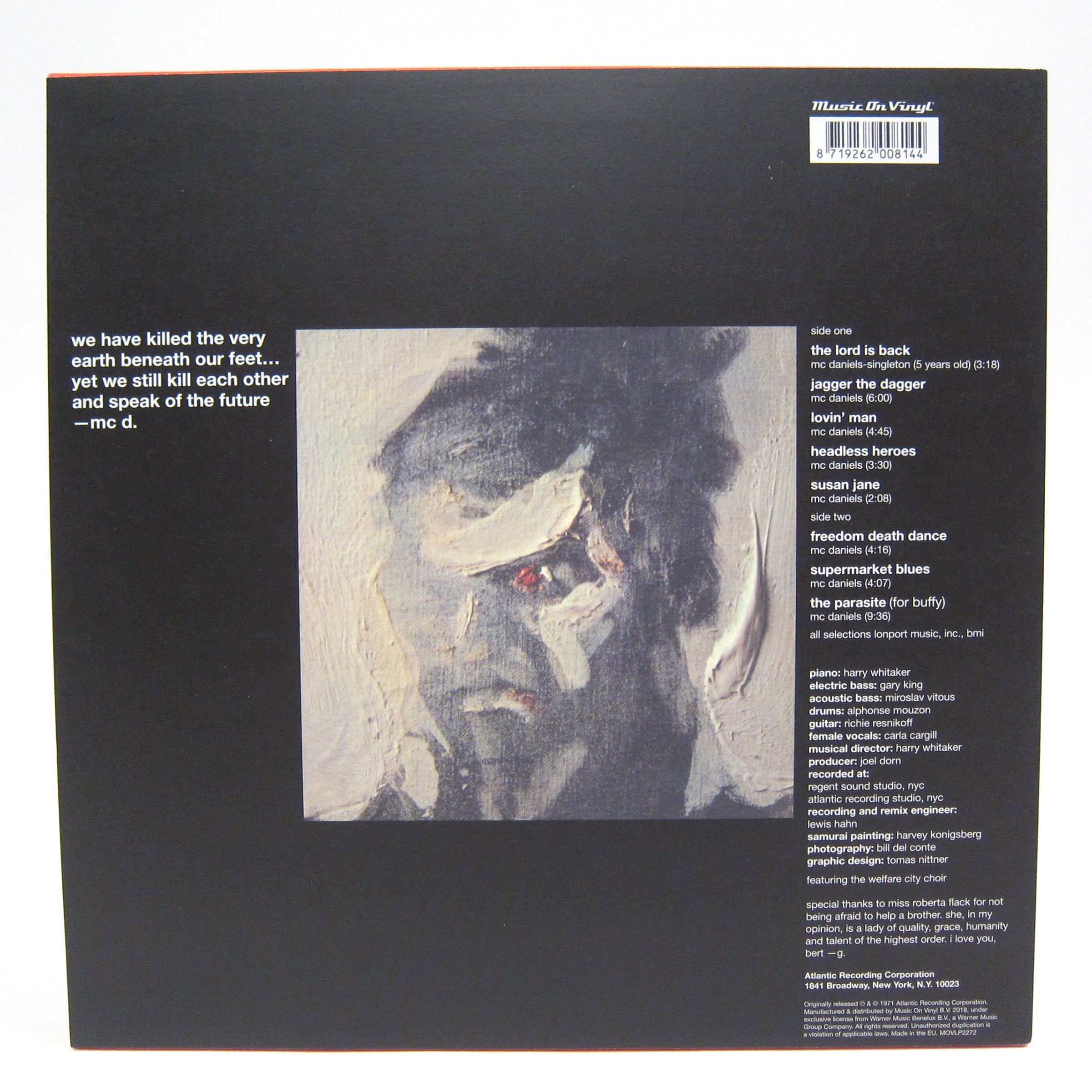 This record has been the subject of multiple late nite conversations here at the Lab. Firstly, some of the baddest grooves ever pressed on wax. Complex movements with the hard drumming of Alphonse Mouzon. Sampled to fame by Tribe for their Low End Theory interludes, Beastie Boys'"Get It Together", Pete Rock's first album and Babu's Comprehension, this album presents buckets of sample-able moments. The vocals is where it gets sticky. McDaniels' religious vocals are not what you'd call traditional good singing, something of an acquired taste. But somehow over the funky arrangements his vocals are bizarrely engaging. On some tracks it gels perfectly like the RAMP-like "Jagger the Dagger," but on others it creates a strange clash like the catchy "See What's Happening..." during "Headless Heroes." This is where you go left or right. Whatever you think, this album is definitely intriguing and it tests the foundations and legitimacy of this whole record digger scene (quality vs. rare quality). This 2018 pressing comes on 180 gram vinyl with convincing repro cover and labels from Music On Vinyl.