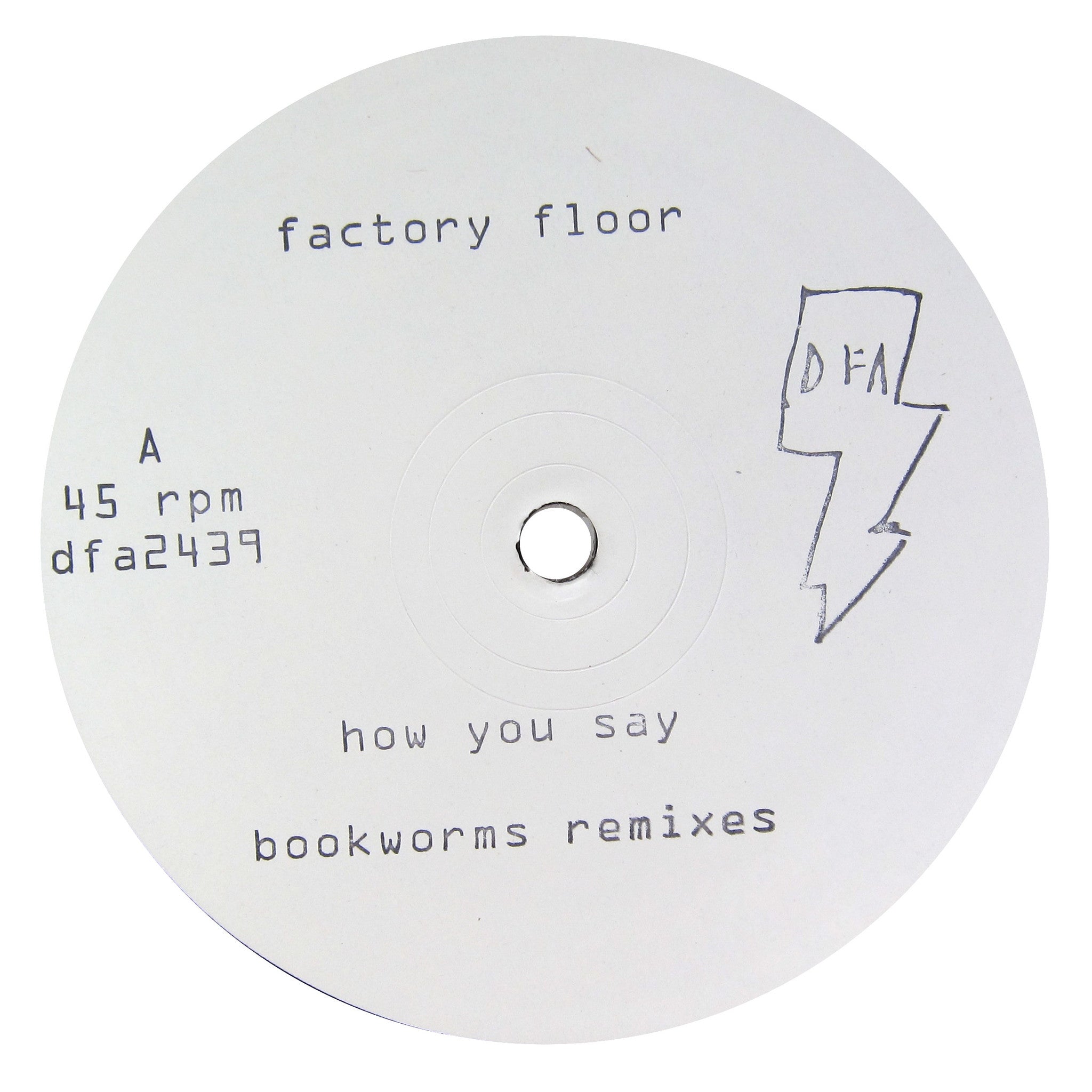 Factory Floor's music is always packed with a lot of intensity. Their recent, more stripped down material seems to up the ante even more so. Brooklyn's Bookworms, of L.I.E.S. and Confused House fame, delivers two remixes of "How You Say" off of Factory Floor's self-titled DFA full length. The two takes seem like explorations of the immediacy and simplicity of the original track. Where the originals vocals lent it a more psychedelic air, Bookworms buries them in hazy noise and delay. The effect is altogether more industrial but the pulsing bass line and ever present rhythm remind us that this is techno. Things get a little more free and experimental with "Remix 2." Where the first take was tightly focused, here the bass line shifts and effects move in and out. Two sides of the same coin perhaps, but you can see why Factory Floor could not choose just one.