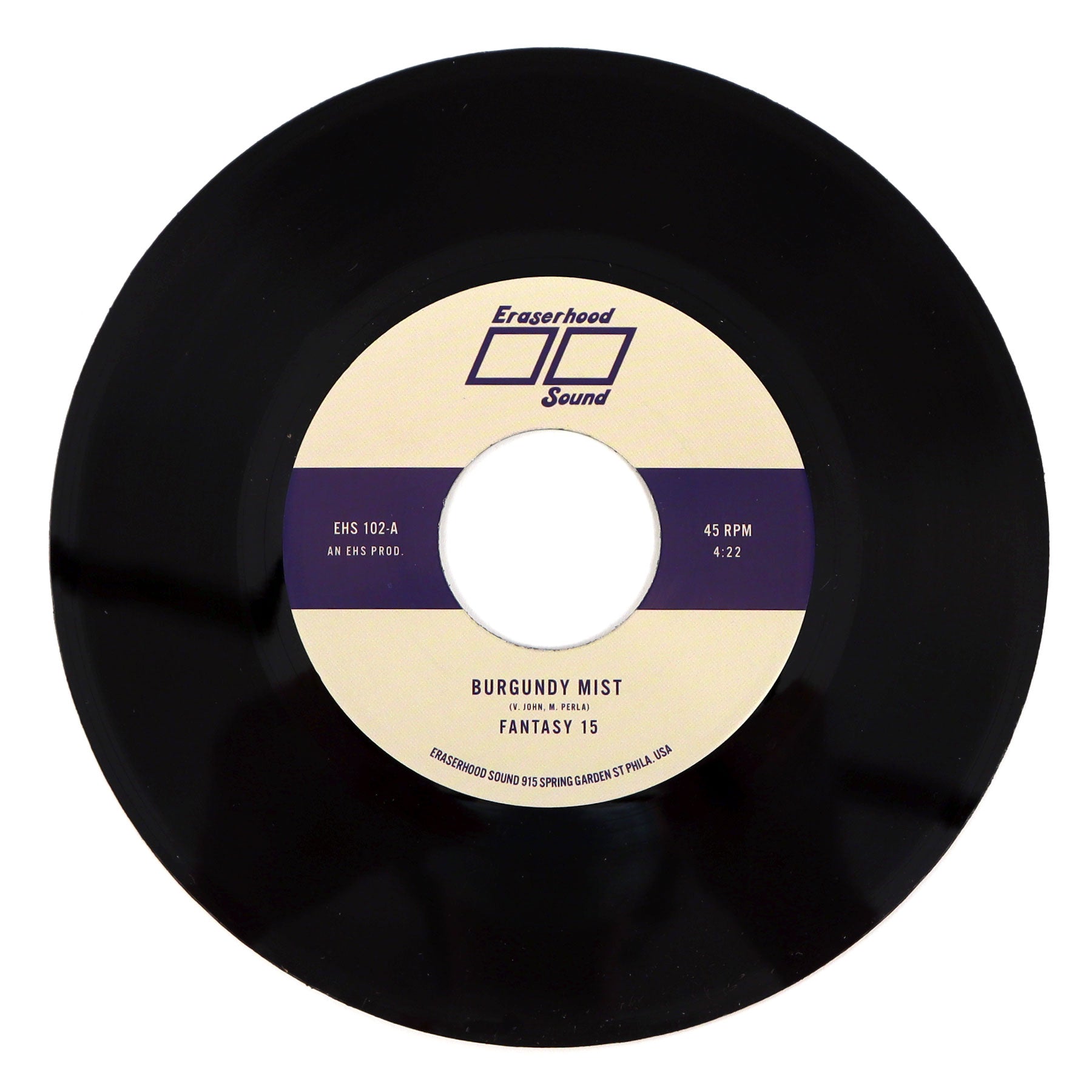 "Fantasy 15 is a band of mortal fighters striving to prevent an evil & merciless digital government from destroying the entire galaxy...Armed with analog synthesizers and a never ending supply of primordial rhythms reminiscent of Nigerian funk, Brazilian tropicalia and New York City new wave, the rebel group works diligently day and night to save all of humanity from the horrors of robotic automation. When they are not busy saving the world, Fantasy 15 serve as the house band for Philadelphia-based 'Synth & Soul' record label Eraserhood Sound. After releasing their debut 7", the group are proud to beam their latest 45 'Burgundy Mist / Percy St.' into Earth’s atmosphere. Lead single 'Burgundy Mist' is a lush, tropical slow jam featuring a sophisticated rhythm section, electrifying guitars, and euphoric flutes. Flip side 'Percy St.' features a hypnotic groove, bolts of analog synthesizer, and angelic vocal harmonies. This 45 proves to be another masterful slice of intergalactic synth funk from Fantasy 15." - Eraserhood Sound