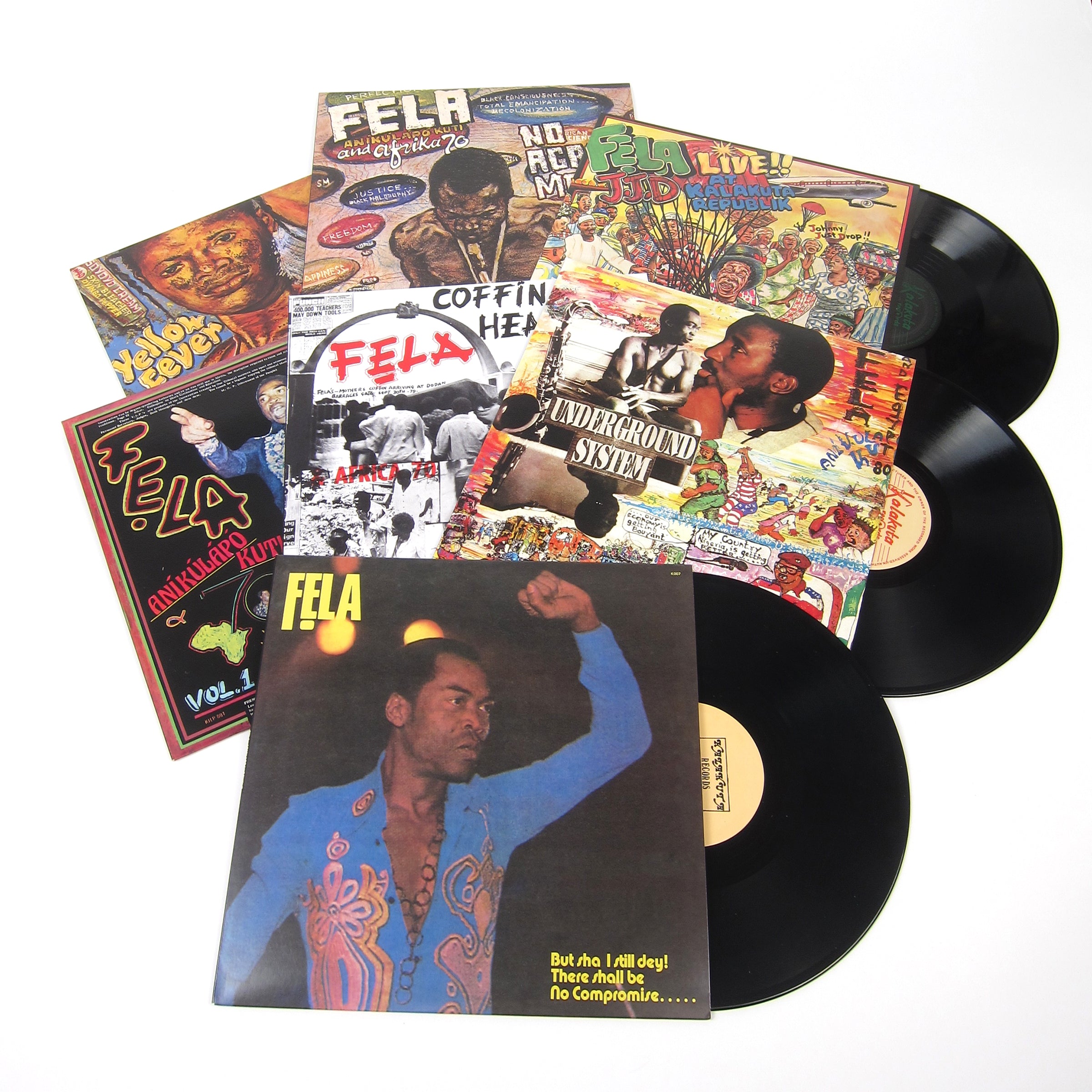 • "Fela Kuti is a Fucking Genius," says Erykah Badu. For the latest installment of Fela Kuti compilations, Lo Down Loretta Brown (Badu's DJ name) compiles her favorites from the Afrobeat pioneer. The 7LP boxset includes 7 albums from the prolific & iconic Nigerian artist's catalog: Yellow Fever,, No Agreement, Johnny Just Drop (J.J.D.), V.I.P., Coffin For Head Of State, Army Arrangement, & Underground System. In addition to a 16" x 24" poster designed by Nigerian artist Lemi Ghariokwu (he designed 26 of Kuti's album covers), the release contains a 20-page full-color booklet, which includes 7 personal essays written by Erykah Badu, plus 7 in-depth commentaries penned by Chris May, a veteran music journalist and Afrobeat historian. There are also song lyrics and never-before-published photos of Fela Kuti, and the artwork for each full-length has been meticulously recreated from og artwork (same with vinyl label artwork).