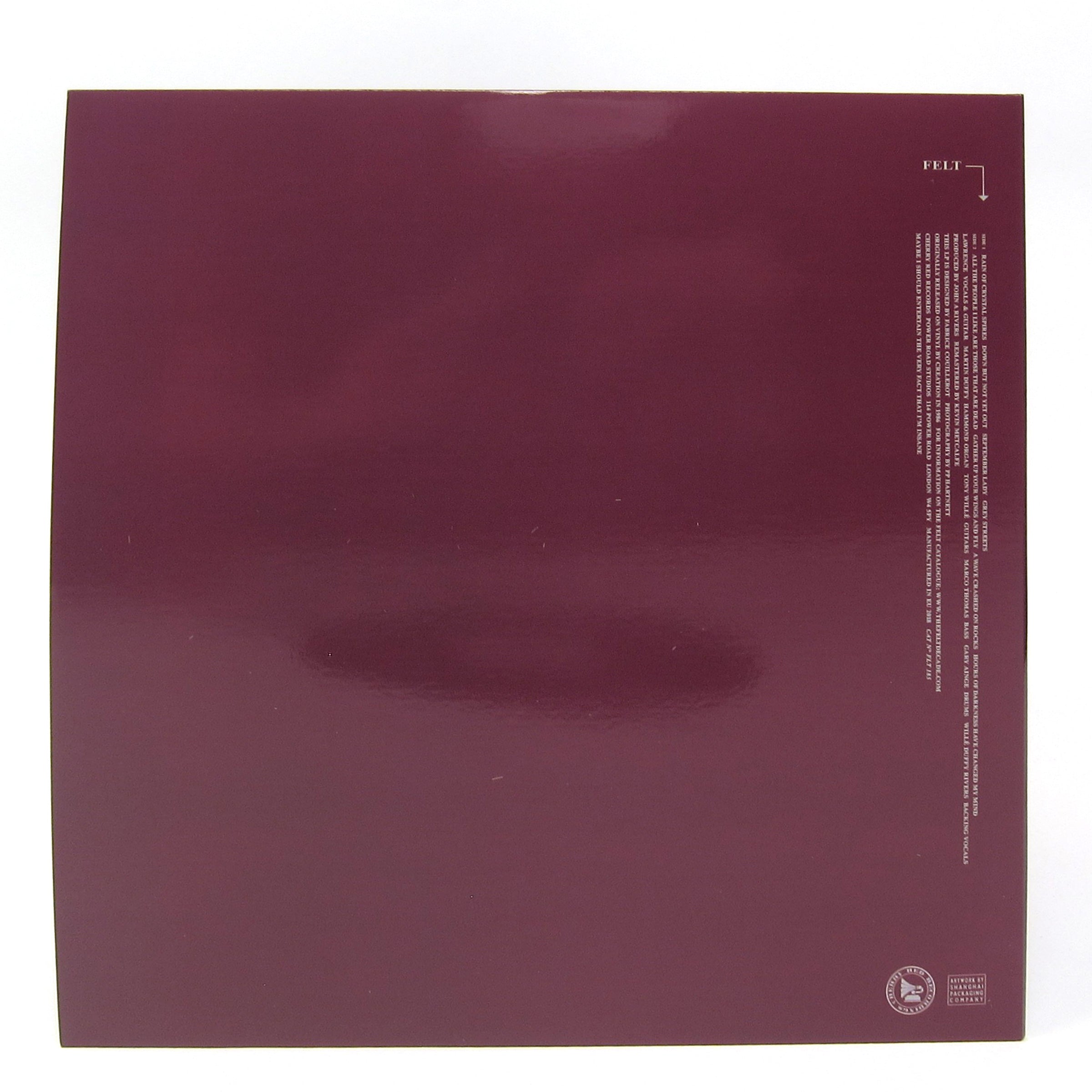 Felt’s story is pretty much the same as The Smiths: Mononymous frontman & his crew of English provincial bumpkins play jangly indie tunes about adolescent dejection. But Felt was even less democratic than The Smiths, and frontman Lawrence was idealistic to the extreme, reportedly forbidding the drummer from playing any cymbals on their first few records (he eventually chilled out). So where’s Felt’s place on the pedestal of cool; why doesn’t anyone talk about them? If Lawrence’d been a little less eccentric and a little more sellable as a sex symbol, would we be hearing their songs in skate videos and seeing models wearing their shirts? Maybe they just had more modest plans for themselves : “I’d like to do something that makes somebody somewhere care” goes a line from “Hours Of Darkness Have Changed My Mind,” the closing number on Forever Breathes The Lonely Word, considered by most to be their masterpiece. “Rain Of Crystal Spires” gently sets the tone of the album before rolling out more dazzling fare: “Down But Not Yet Out” is despondent jangle pop perfection; other highlights include “Grey Streets,” “A Wave Crashed On Rocks,” the climactic “Gather Up Your Wings And Fly” and the macabre (and particularly Smithsy) “All The People I Like Are Those That Are Dead.” Founding guitarist Maurice Deebank had recently quit the band, and the increased presence of keyboardist Martin Duffy’s (pictured on the cover, he’d later join Primal Scream and play on their first two albums) organ lends an almost spiritual cadence to the songs… not to mention those densely-layered choral harmonies which never fail to make my hair stand on end. All 10 Felt albums are slowly being reissued under Lawrence’s supervision, and while Crumbling The Antiseptic Beauty and Ignite The Seven Cannons certainly have their moments, this is the crown jewel of the catalog; up there with whatever is considered the best Smiths album and eons better than any of Morrissey’s overrated solo crap. Remastered from the original tapes by Kevin Metcalfe; sounds immaculate and well worth the wait. Recommended. (Note: the gatefold sleeve is on the delicate / flimsy side - open with caution)