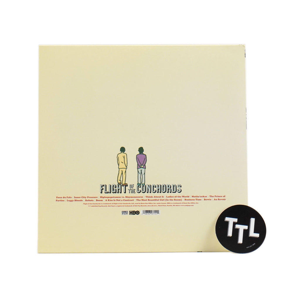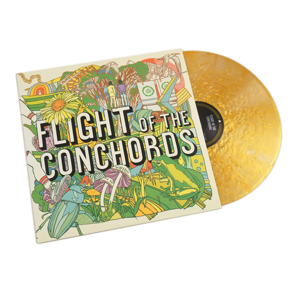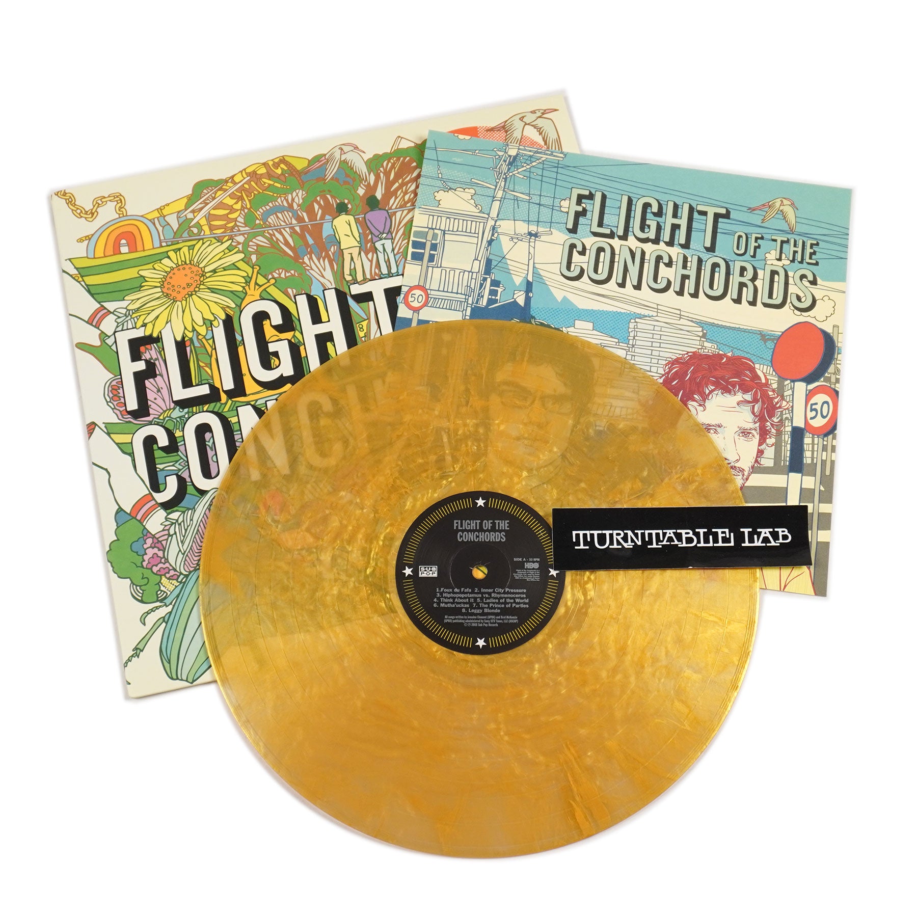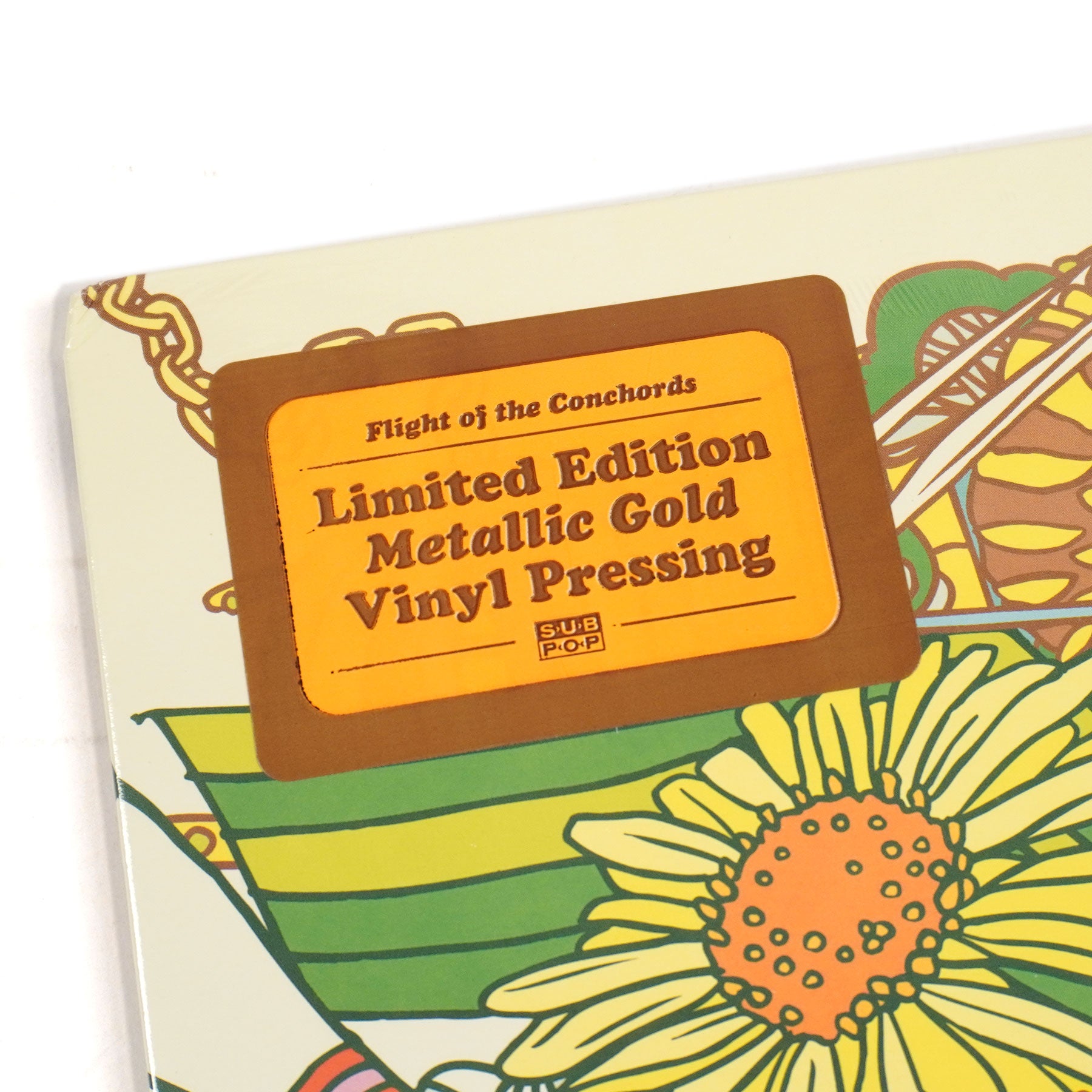 "'Flight of the Conchords' 2008 self-titled debut album is back on LP with a limited-edition gold-vinyl pressing, limited to 1,000 copies! This album followed their six-track Grammy Award-winning CDEP The Distant Future. Produced by Mickey Petralia (Beck Midnight Vultures, Ladytron Light & Magic) in Los Angeles, New York and Wellington, Flight of the Conchords features fully fleshed-out and professionally recorded versions of Flight of the Conchords concert favorites and highlights from their eponymous HBO series. The songs are heard here in expanded but reverent arrangements. Bret McKenzie and Jemaine Clement's trademark acoustic guitars lead the blitz, backed by a diverse array of instrumentation and production technique. And, the album sounds legitimate and musically, it's incredible, but, as Shakespeare said, 'Does it funny?' Happily, yes. If amazing, delightful and hilarious is your idea of funny, then prepare for undisappointment! These 15 songs pay homage to Pet Shop Boys, censorship, Marvin Gaye, sexism, Shabba Ranks, and backhanded compliments. To be blunt, if you can't find a rire ou sourire in the FSL study guide of opening track, 'Foux du Fafa,' then, please notice, vous êtes malade." - Sub Pop