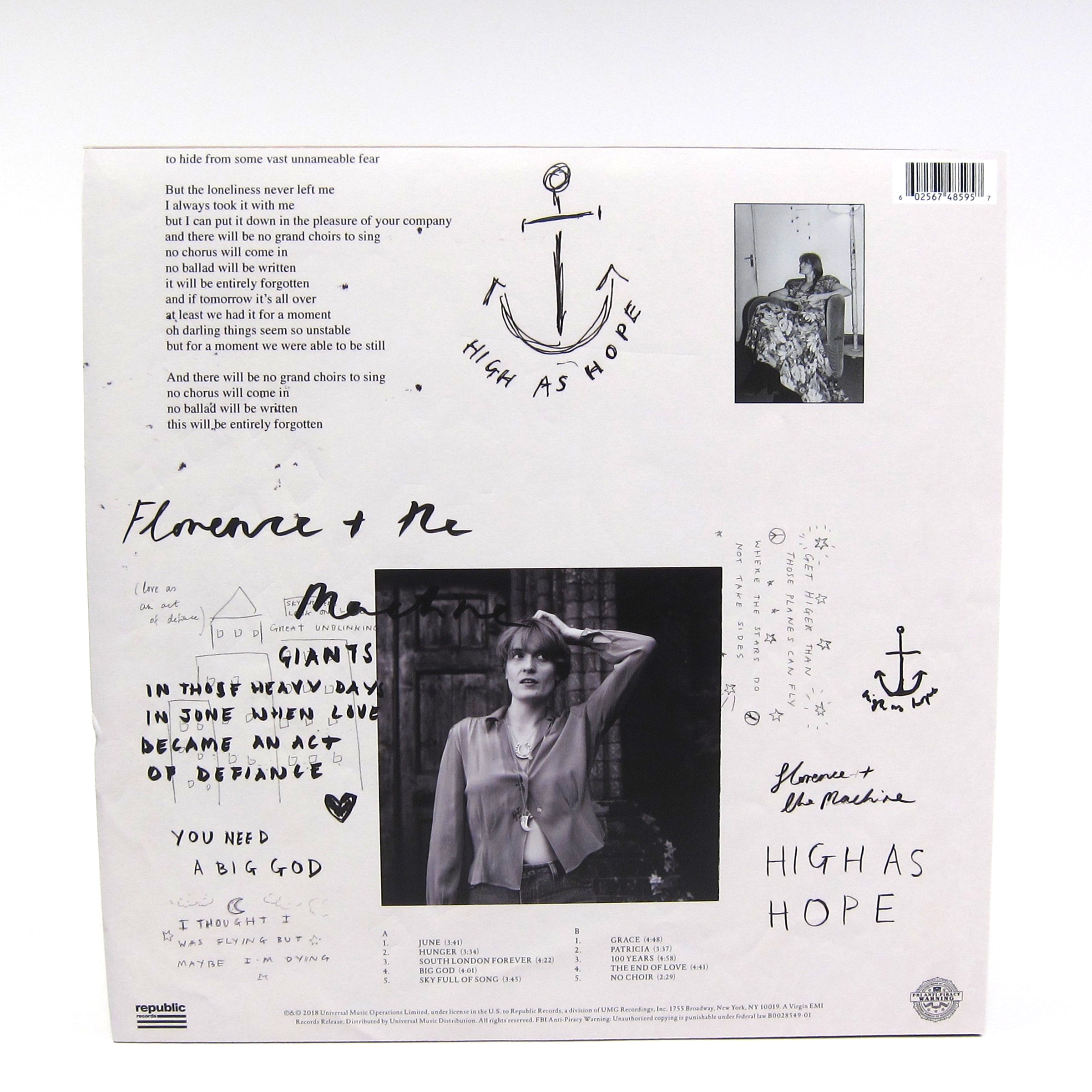 Fourth studio album from Florence Welch and the crew. The London outfit first teased the album on Record Store Day with a super limited seven-inch containing the delectable "Sky Full Of Song" (backed with Welch reading an original poem), and the full long player delivers on the promise of that single and more. It's been almost a decade since the band arrived on a massive wave of hype with 2009's Lungs, but it's clear they're still one of the strongest songwriting machines in music in 2018 and they're not letting up. The arrangements (co-produced with Emile Hayne) are a little more reserved than their previous stadium-tuned efforts, providing a wider platform for Welch's powerful lungs. Includes contributions from Jamie XX, Kamasi Washington, Father John Misty, Andrew Wyatt of Miike Snow, Nathan Willett of Cold War Kids, Sufjan Stevens collaborator Doveman and more. Tracks to check out: "100 Years,"  "Big God," "Hunger" and "South London Forever." Black vinyl pressing with printed inner sleeve and giant lyric booklet.