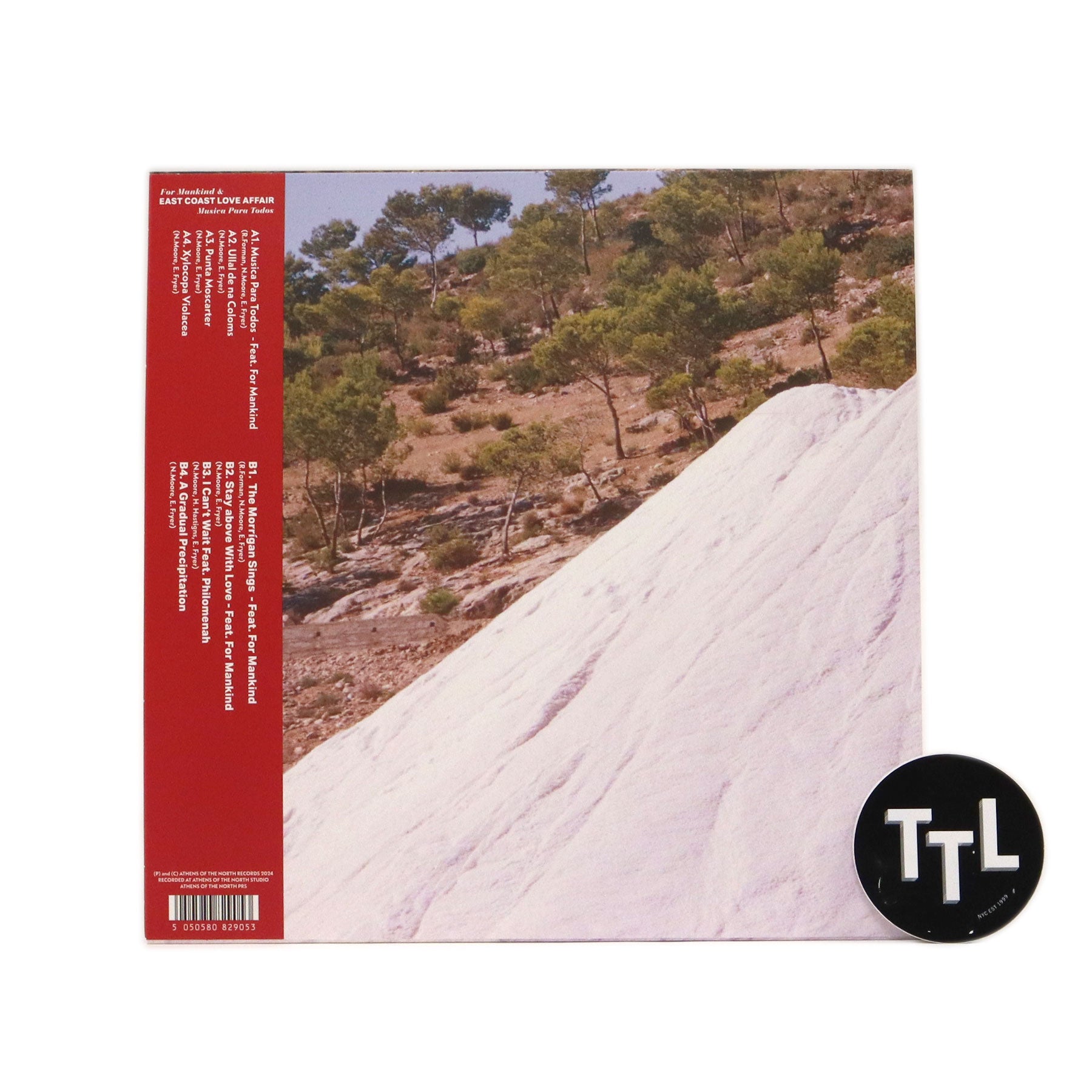"Our close friend and fellow Scot, now Ibiza resident, Pikes resident DJ and island favourite, For Mankind (Russ Forman) had talked about doing a studio collaboration for some time. Drawn upon our mutual loves of house music, dub and weirdo dance music by the likes of African Head Charge, Larry Heard and Sun Ra. We spent hours just pulling and listening to records from all our collections and talking about music before hitting the studio. What resulted from the session is a beautiful and exciting blend of everyone's taste - dreamy, minimal, almost techno synthscapes, New York oddball house that sounds like some lost Sleeping Bag test press to almost Música Popular Brasileira. At one point Russ, (For Mankind) grabbed the mic and hit us with his best pidgin Spanish, so we felt it only right the LP should also bear his name. Russ' vocal came as a surprise to us all, loose, funky, wild and carefree, (like the man himself), with positivity and a message: This music is for everyone. Our good friend Hanna (Philomenah) also brings her giant talent on Brazilian influenced 'I Can't wait', expect to hear a lot more from this Shetland-born singer on Athens of the North and elsewhere." - East Coast Love Affair