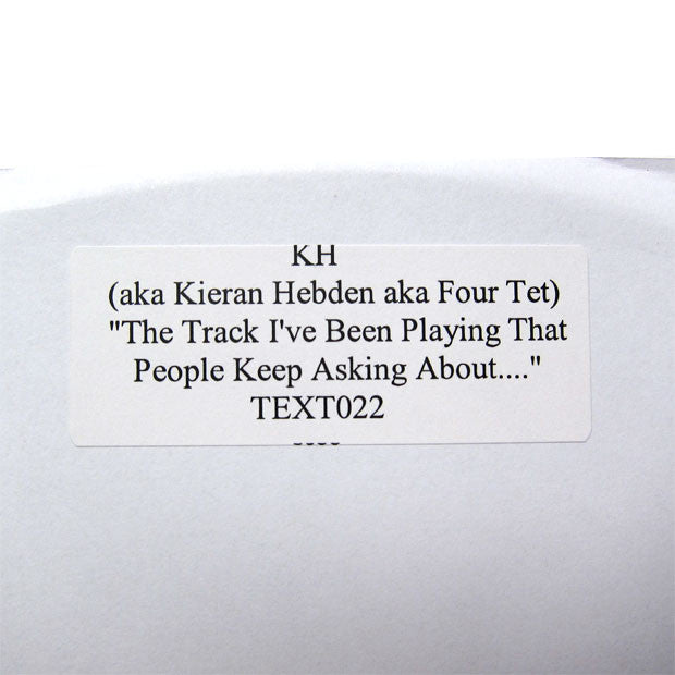 We've been waiting for this one for awhile! Maybe we spend too much time on the internet, but the murmurs surrounding Four Tet's release as KH, "The Track I've Been Playing That People Keep Asking About and That Joy Used in His RA Mix and Daphni Played on Boiler Room," has been a bit too much to bear. It's a simple enough track, built around looping panting and organic percussion. The African chanting that moves through the track is really what carries it all. Simple, but damn is it effective. Limited edition single sided white label pressing. Recommended.
