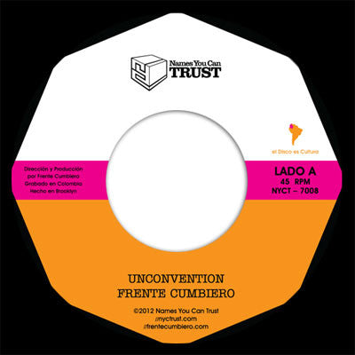 After securing heavy rotation status with their debut single on Names You Can Trust, Frente Cumbiero triumphantly returns with their 2nd original single. Building upon their recent and rousing European and New York City tour in 2011, as well as the ongoing Ondatropica project with Quantic at the legendary Disco Fuentes studio in Medell__n, this new single encapsulates the energy the group has developed as musicians and performers, as expressed in the rousing percussive, energy of the A-Side bomb "Unconvention," to the synth-bass driven, psychedelic trip of B-Side "Ika." A perfect blend of Colombian roots rhythms and modern, inventive composition and instrumentation that'll have bodies shaking and heads turning ǃ another strong reminder that Frente Cumbiero is quickly becoming the leader in the Cumbia Nueva movement.