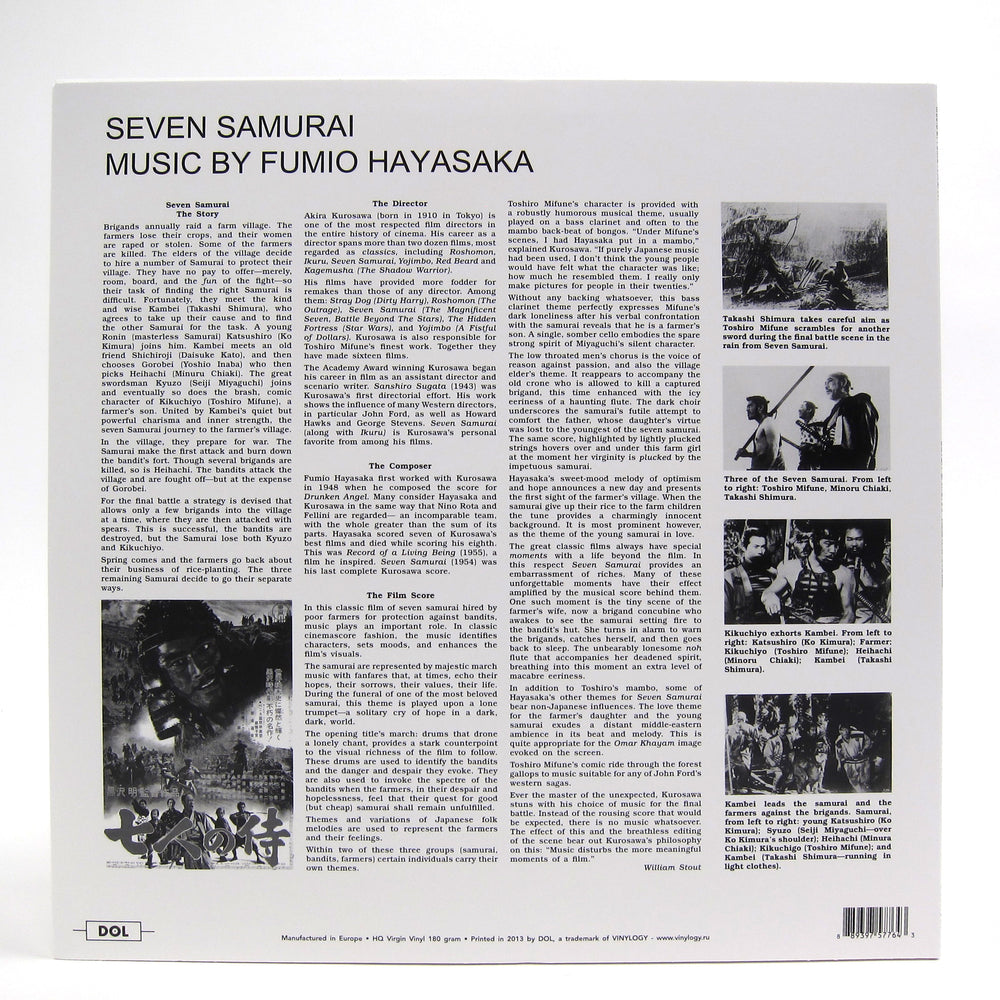 Beginning with 1948's Drunken Angel, composer Fumio Hayasaka started a revered creative partnership with Akira Kurosawa that netted 7 films, which are considered the director's best works. Seven Samurai Soundtrack is Hayasaka's last complete score for Kurosawa, and the poignant music, driven by his immaculate blend of western orchestral & traditional Japanese sounds, is pressed on 180g white vinyl. Evocative and full of string arrangements that perfectly complement the on-screen magic, the score, recorded in Japan in 1955, has a timeless quality to it that matches the influential nature of the film (one of the most referenced films in cinema). A must for cinemaphiles and/or Hayasaka fans, includes a 16-page booklet as well as bonus tracks, which consists of music taken from 1955 Kurosawa film I Live in Fear (Hayasaka passed away while working on the score, and it was completed by Masaru Sato.)