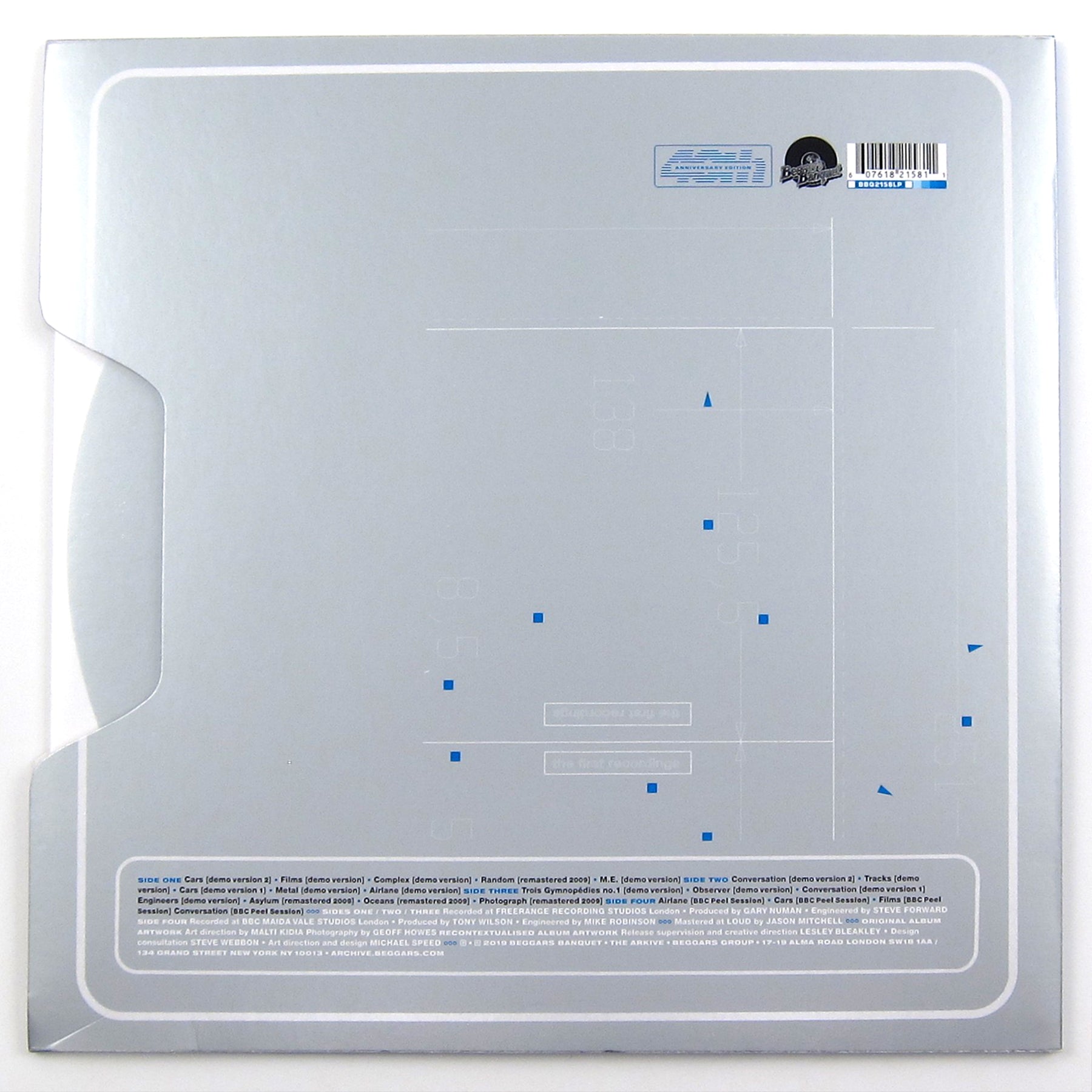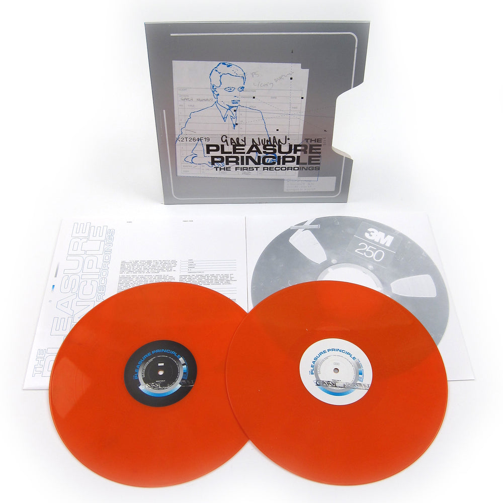 While Andy Warhol talked about wanting to become a machine, Gary Numan tried his hardest. Gary Numan, son of a London Bus Driver, joined the Air Training Corps as a teenager, when he was still leaning towards being a pilot and not a pop star. He began learning to fly in 1978, but his rise to success as the leader of Tubeway Army in 1979 meant a bit of delay in getting his proper pilots’ license. He founded the small charter flight company Numanair, which remained in operation until 2013. His lifelong love of vehicles and machines was evident from his first solo hit “Cars”, which he famously wrote while sitting in one. “Because of my Asperger’s, I’ve never been good with crowds of people, and I find cities very threatening. Somehow, as soon as I get in a car, all the panic goes away. It’s nearly 40 years since I wrote that song, but the car is still my security blanket.” The First Recordings compiles material that shows the evolution of Numan’s first credited solo LP The Pleasure Principle, with much of the material available on vinyl for the first time. Many of the “early versions” were previously released in a 2009 deluxe CD package, but two tracks (“Tracks (Demo Version”, “Cars (Demo Version 1)”) were previously unreleased. Includes alternate takes of iconic Numan compositions “M.E.”, “Airlane”, “Oceans”, “Photograph”, and “Complex”, and more. This two disc set also includes four tracks from a BBC Peel Session originally recorded in 1979. This LP is pressed on orange vinyl, and is packaged in a custom die-cut sleeve that resembles a vintage master recording. Includes printed inner sleeves with detailed liner notes about these tracks and the relevant recording sessions.