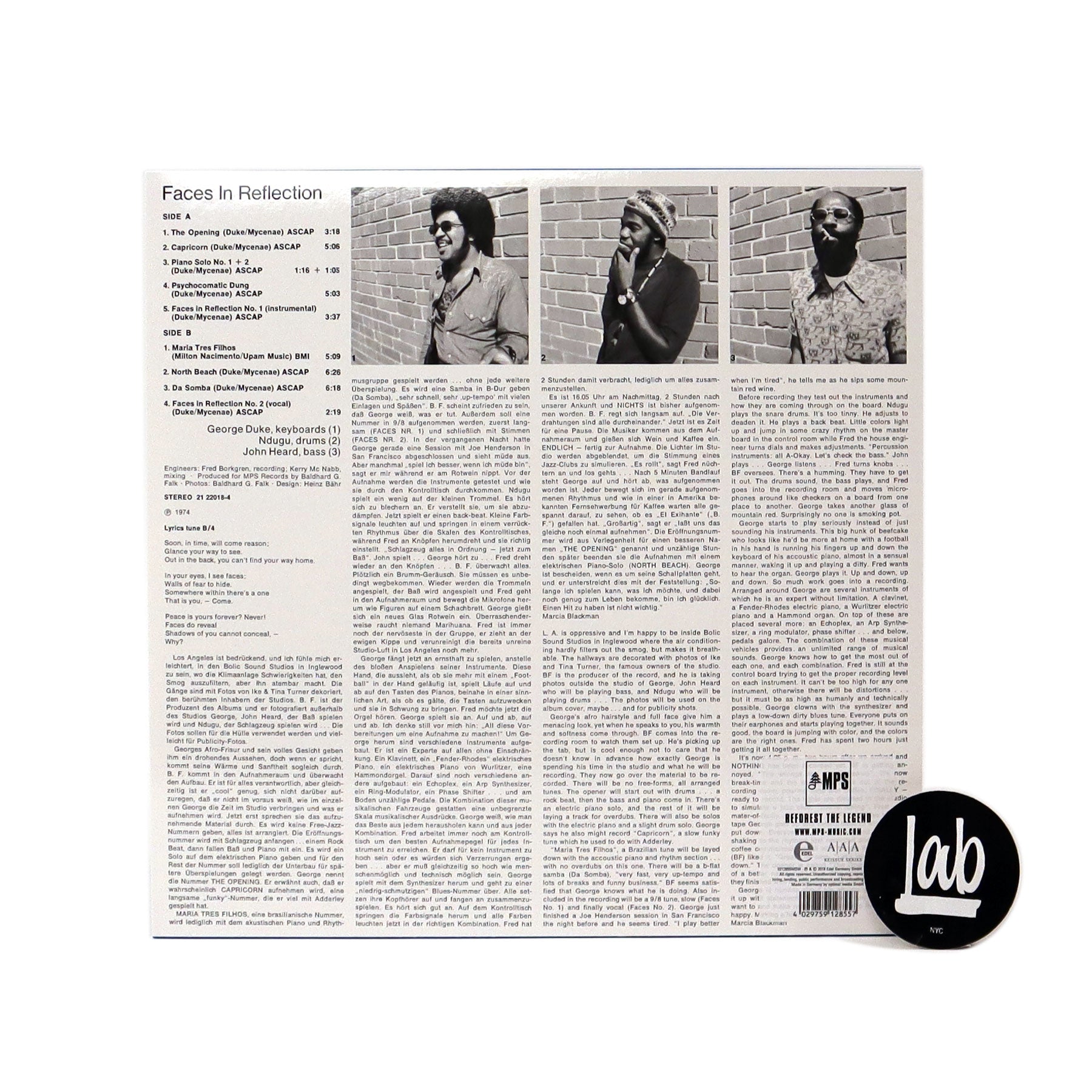"In many ways, this trio recording is a milestone in the career of this young Californian. George Duke unveils more of his early experiments with the ARP synthesizer, as well as a new creativity on such more conventional keyboards, as the Wurlitzer, Fender Rhodes, and the clavinet. As a result, Faces in Reflection is characterized by a wide variety of tonal hues. The journey moves from the explosive The Opening on to the tender-tinged Capricorn, which Duke had snatched from the Cannonball Adderley repertoire. Adderley had been the second major player he had worked with during that early period; Frank Zappa was the first. Two impressionistic solo intermezzi segue into the funky fusion escapade Psychosomatic Dung, with superb interplay between drummer Ndugu and bassist John Heard. The title piece’s secretive synth lines are the moments of calm before Duke’s passionate love affair with Brazil on the B side. The most surprising excursion on this side is the vibrant and rhythmically intricate adaptation of Milton Nascimentos’ Maria Três Filhos, counterbalanced by the synth laboratory of North Beach. Duke himself cherished the recordings; he stated that, 'This was the first LP that really said what I wanted to say.'" - MPS Records