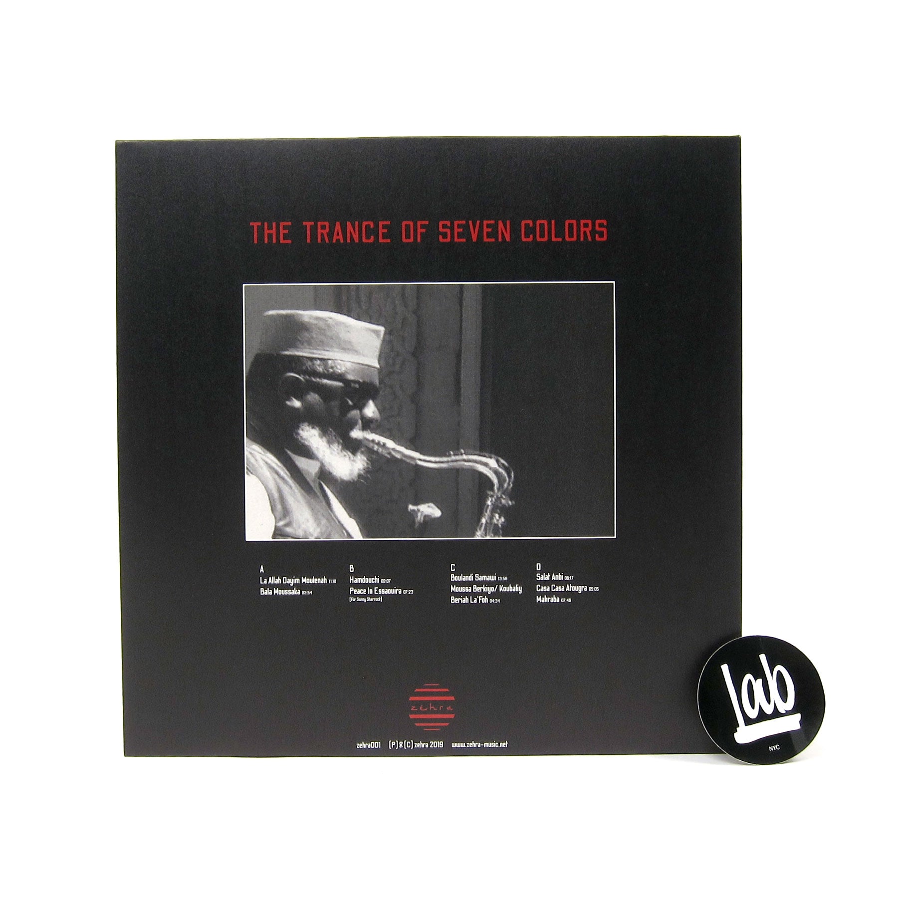 "Zehra present The Trance Of Seven Colors by master Gnawa musician Maleem Mahmoud Ghania and free jazz legend Pharoah Sanders, available on vinyl for the very first time. In 1994, Bill Laswell and Sanders went to Morocco equipped with just some mobile recording devices to record Ghania and a large ensemble of musicians (a good portion being family members) in a very intimate set-up at a private house. Sanders, the legendary free jazz musician, contributed the distinctive tenor saxophone sounds that gained him highest praise as a truly spiritual soul right from the days of playing with John Coltrane and his wife Alice and on seminal solo albums, like Karma (1969). Maleem Mahmoud Ghania (1951-2015), son of the master of Gnawa music Maleem Boubker Ghania and the famous clairvoyant and 'moqaddema', A'isha Qabral, and a master of the traditional Gnawa style in his own right. With 30 cassette releases of music from the Gnawa repertoire with his own ensemble and performances at every major festival in Morocco, including performing for the King in various contexts, Mahmoud Ghania was also one of Morocco's most prominent professional musicians. Originally released in 1994 on Bill Laswell's Axiom imprint, and produced by Bill Laswell, The Trance Of Seven Colors is the meeting of two true musical masters. 25 years after its original CD release, it is finally available on vinyl. Remastered and cut by Rashad Becker at Dubplates & Mastering, Berlin. 180 gram vinyl; comes in gatefold sleeve; includes download code." - Zehra