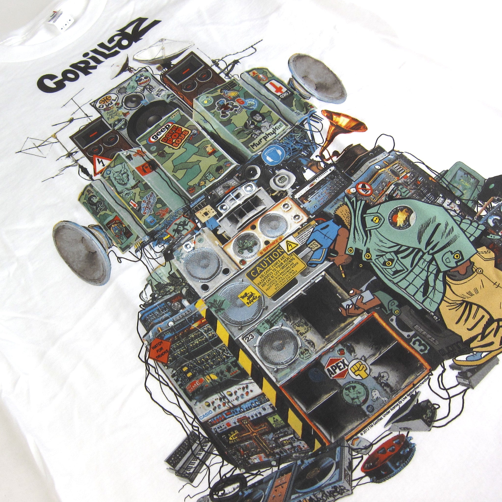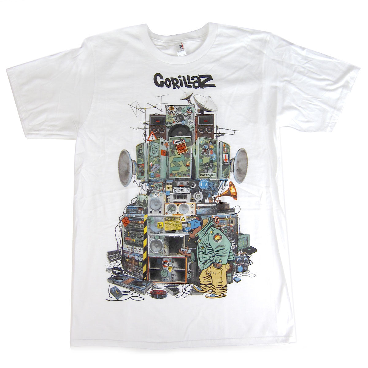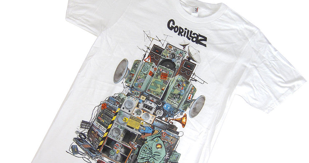 Boom! Gorillaz with the massive wall of sound. See if you can name all the vintage gear hidden in the stacks! Printed on soft, 100% cotton tees. Standard fit.
