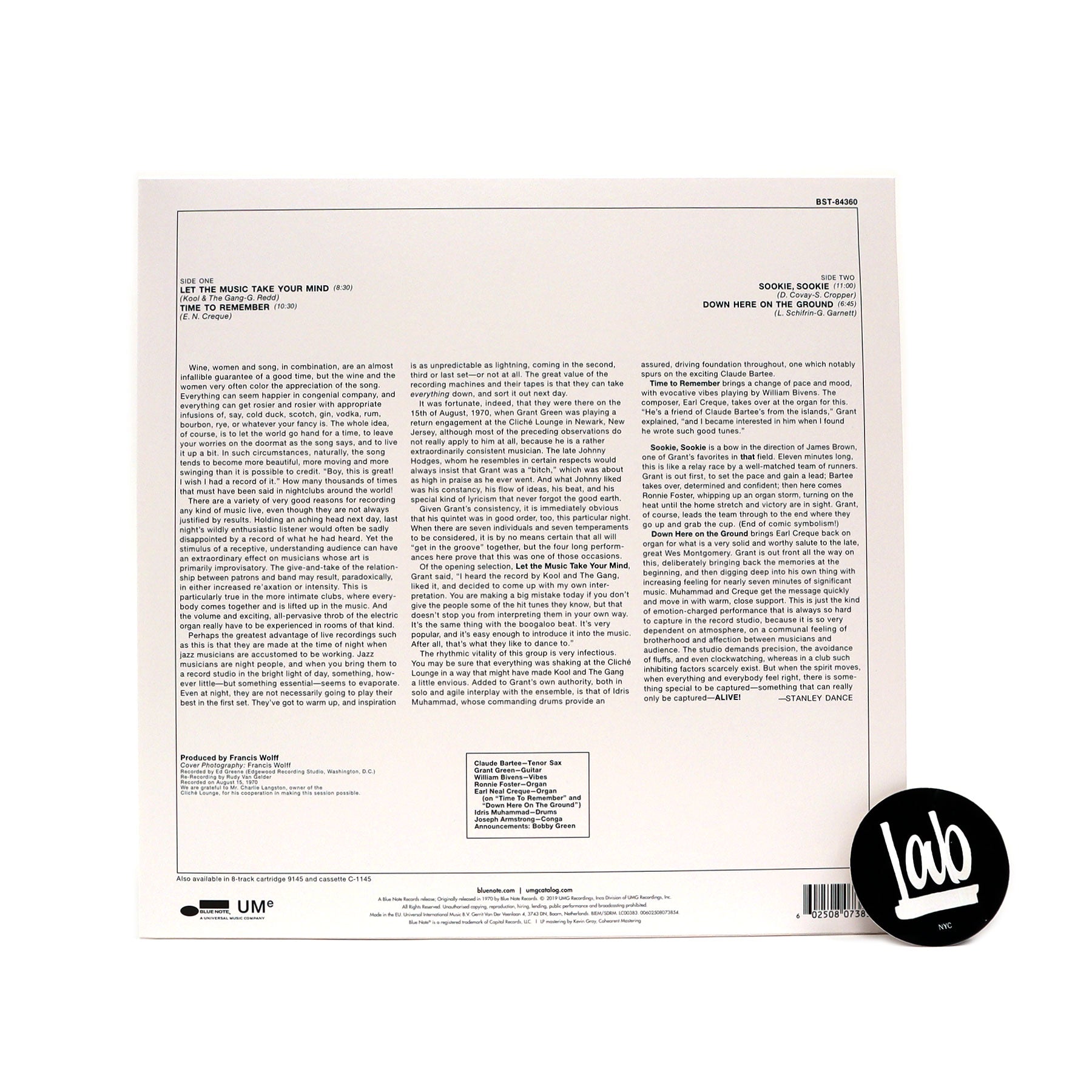 - featuring Grant Green (g), Claude Bartee (t. sax), Ronnie Foster (organ), Earl Neal Creque (organ), Idris Muhammad (d), Joseph Armstrong (perc)