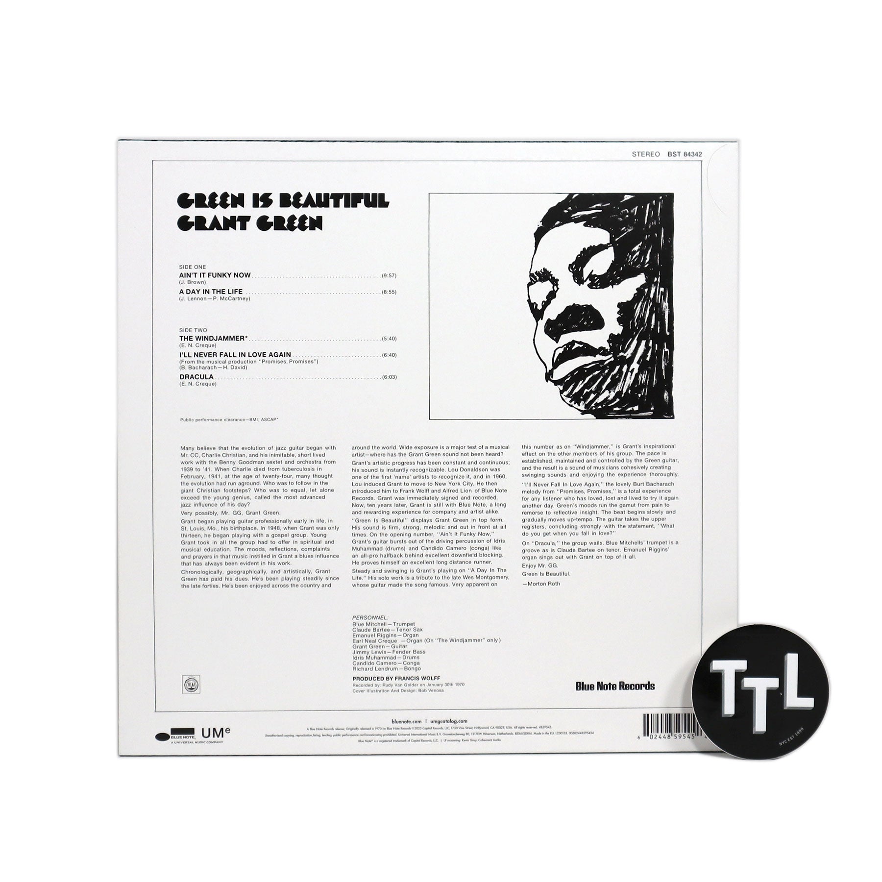 "Guitarist Grant Green was prolific on Blue Note through the early-60s recording more than 20 hard bop and soul jazz sessions as a leader for the label between1 961-1965. By the time Green returned to the label in 1969 his musical style had evolved to wholly embrace jazz-funk as first heard on his album Carryin’ On. As the decade turned to 1970, Green was in back in Van Gelder Studio that January to record his vibrant album Green Is Beautiful, which remains one of the highlights of the era with the guitarist joined by Blue Mitchell on trumpet, Claude Bartee on tenor saxophone, Emmanuel Riggins and Neal Creque on organ, Jimmy Lewis on bass, Idris Muhammad on drums, Candido Camero on congas, and Richie Landrum on bongos. Throughout Green’s distinctive tone shines on this grooving 5-song set that opens with a 10-minute funk workout on James Brown’s 'Ain’t It Funky Now' and includes covers of The Beatles’ 'A Day in the Life' and Burt Bacharach’s 'I’ll Never Fall In Love Again' as well as two memorable originals by Creque: 'The Windjammer' and 'Dracula.' This Blue Note Classic Vinyl Edition is stereo, all-analog, mastered by Kevin Gray from the original master tapes, and pressed on 180g vinyl at Optimal. " - Blue Note Records