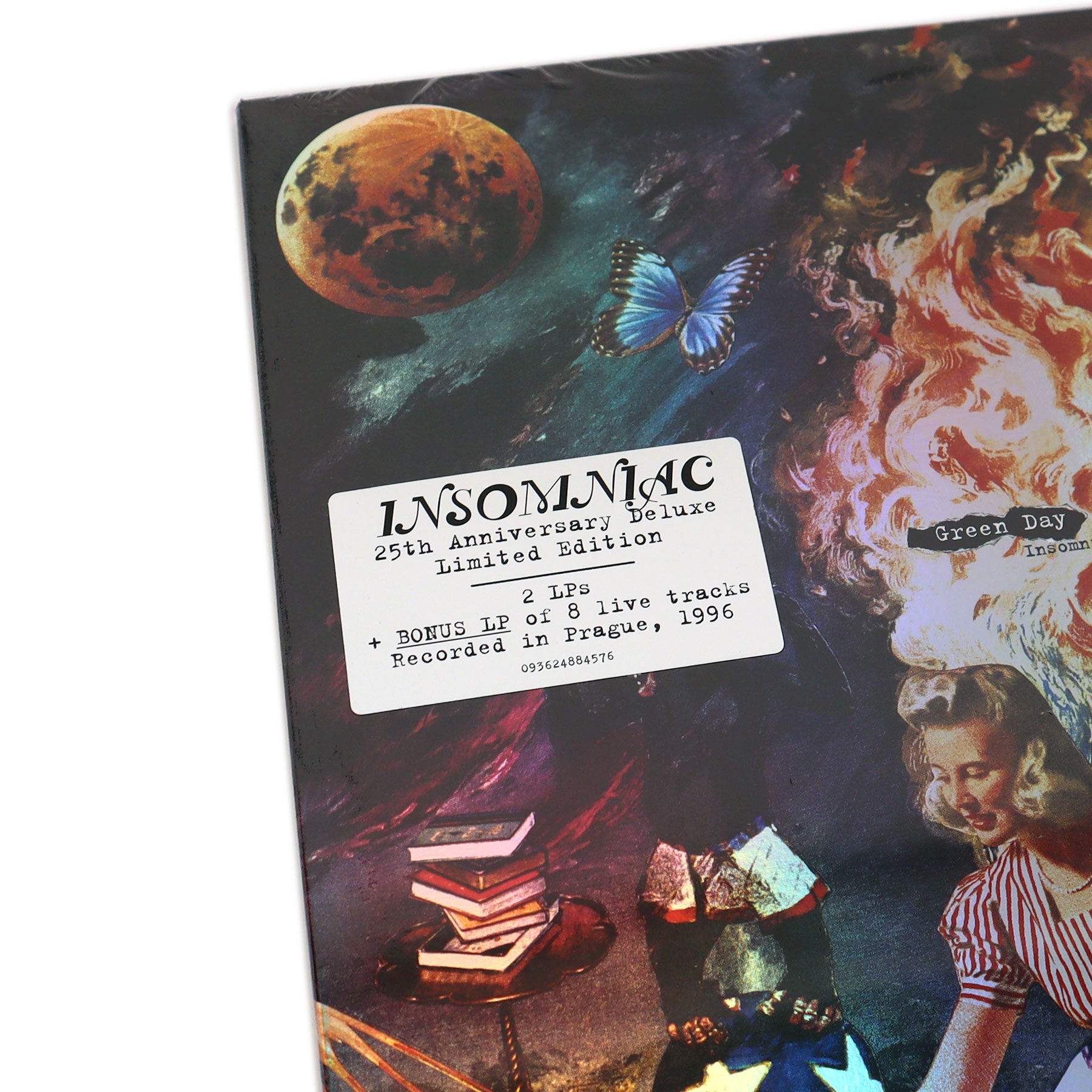 "Double vinyl LP pressing. Insomniac is finally old enough to rent a car (or whatever else you can do when you're 25, we're not lawyers), so we remastered it to celebrate, and we're throwing in some bonus goodies to boot! This set includes an additional vinyl LP with eight rare or never previously released live tracks from the Prague stop of the insomniac world tour on march 26, 1996 and an etched D-side." - Reprise Records