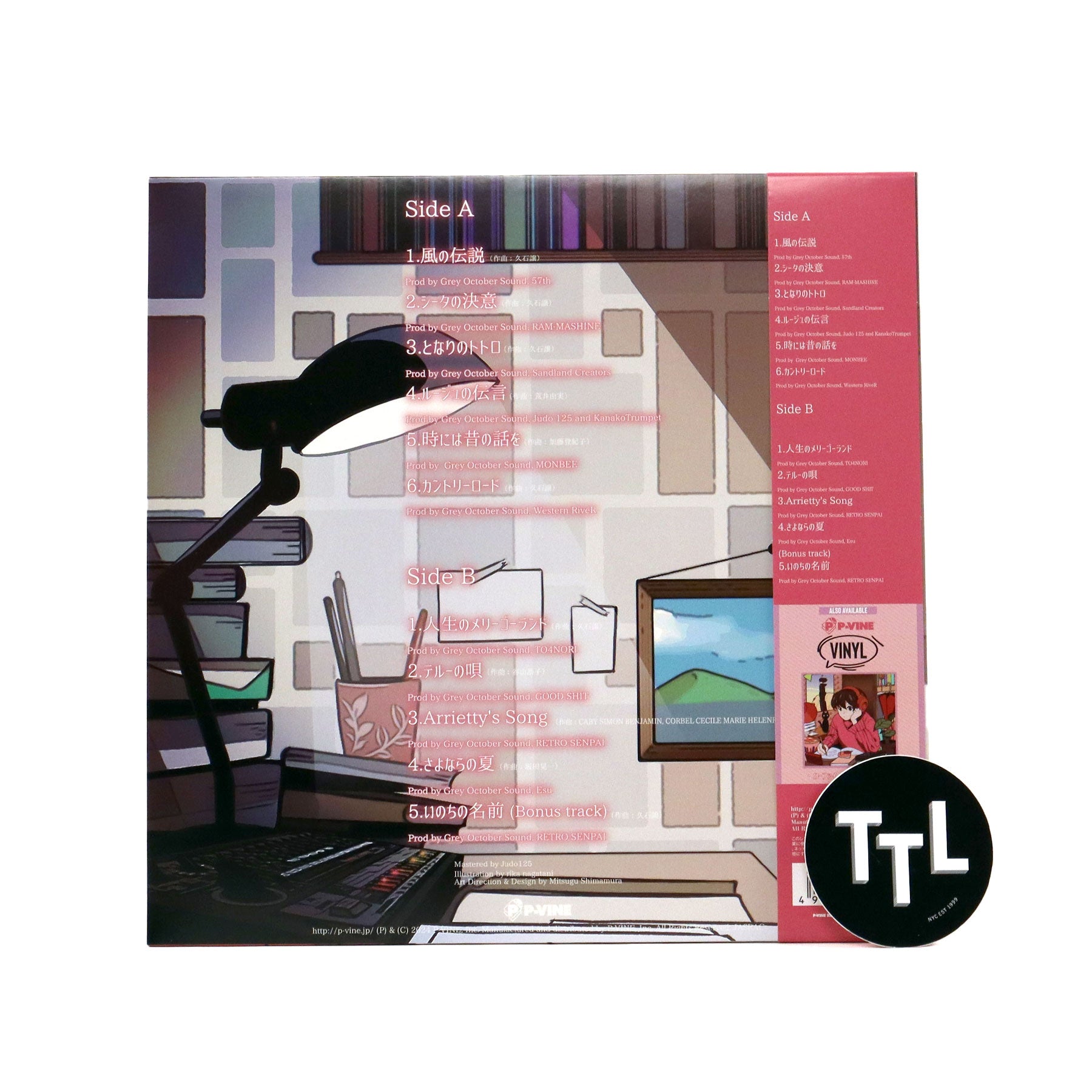 "The album Lo-Fi Ghibli became a hit worldwide with covers of Studio Ghibli songs in a Lo-Fi hip-hop style, and it made Grey October Sound known not only in Japan but also overseas. This series became a topic of discussion even on Japanese television, and it's common to see tourists visiting Japan carrying the Lo-Fi Ghibli LP from record stores to the register. P-VINE is thrilled to announce the release of the highly anticipated sequel to this popular work, Lo-Fi Ghibli 2. In this new release, Grey October Sound's producers have arranged Ghibli songs not included in Vol. 1, and the visual imagery, including the jacket, continues to be produced by illustrator Rika Nagatani. Placing this record on your turntable will instantly provide you with a relaxing chill time accompanied by memories of the Ghibli films." - P-Vine