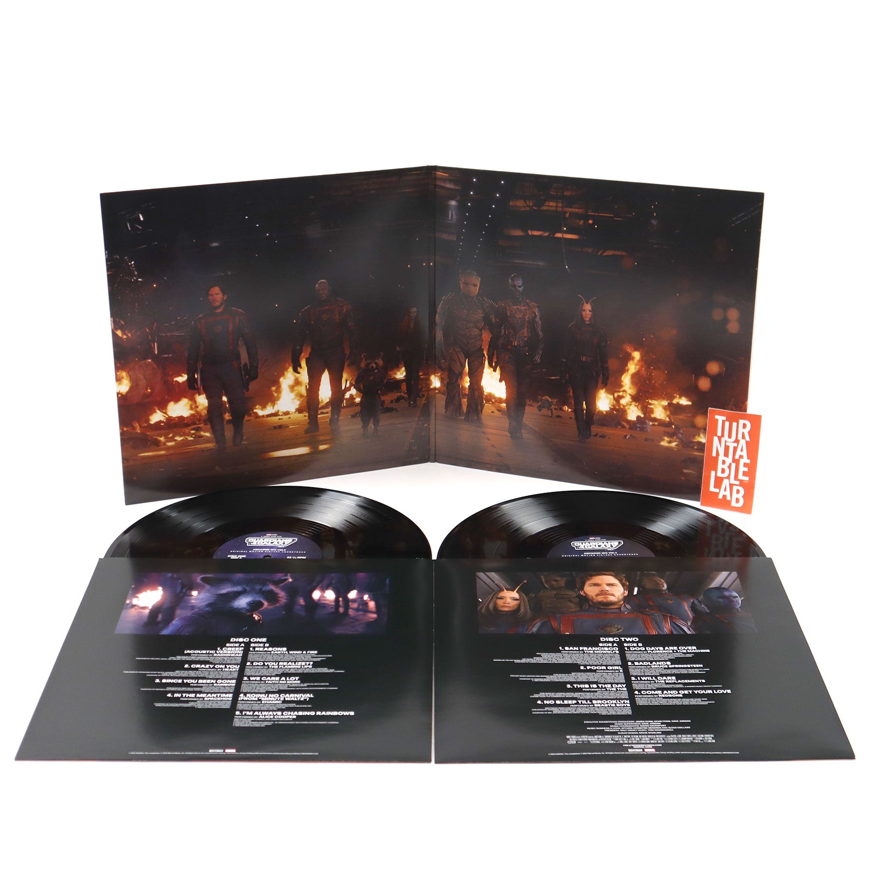 "It's time to face the music. Still reeling from the loss of Gamora, Peter Quill rallies his team to defend the universe and one of their own - a mission that could mean the end of the Guardians if not successful. Featuring Radiohead, Spacehog, the Flaming Lips, Beastie Boys, the Replacements, Earth Wind and Fire, Faith No More, Heart and more; a stellar line-up of tracks perfect for any hero saving the galaxy. Double vinyl LP pressing." - Hollywood Records