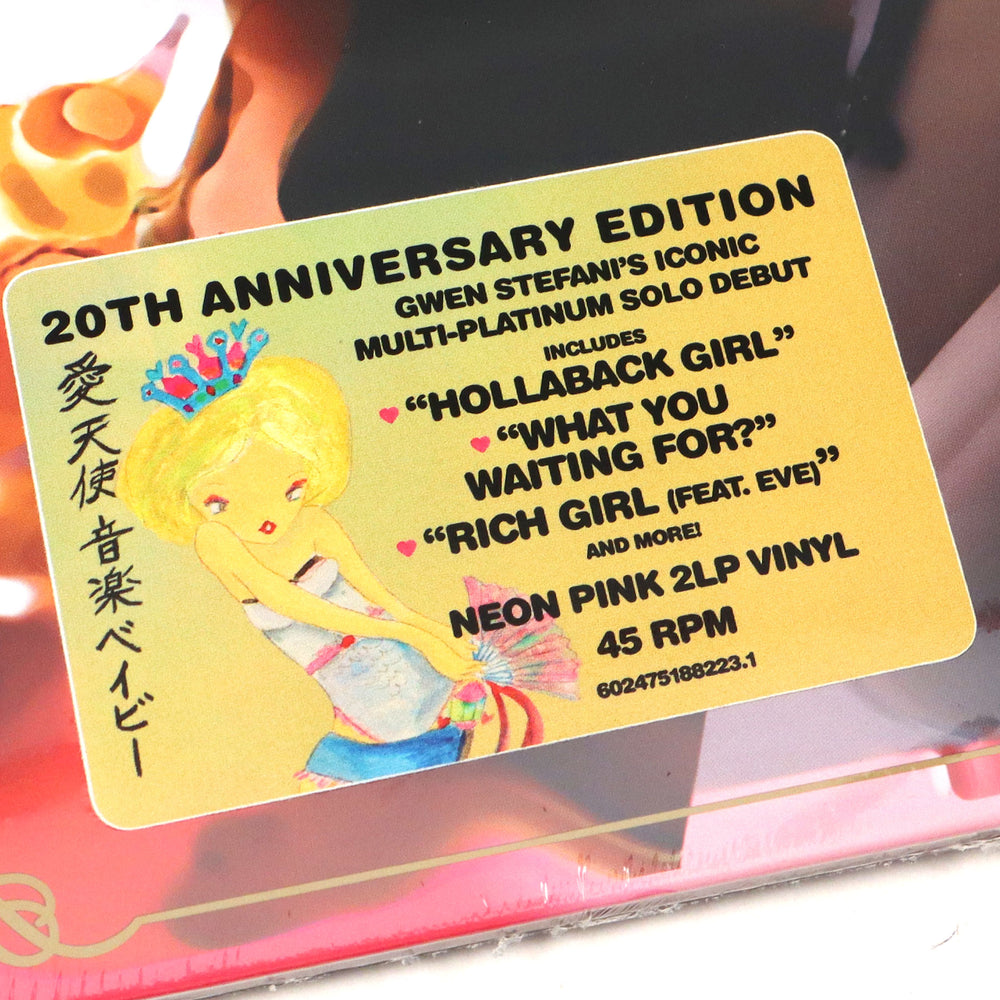"Gwen Stefani's 5x platinum album, Love Angel Music Baby, celebrates it's 20th anniversary with this 2 LP set (45 RPM) pressed on neon pink vinyl. Featuring the #1 single, 'Hollaback Girl,' plus the hits, 'Rich Girl (feat. Eve),' 'Cool,' and 'What You Waiting For?' " - Interscope